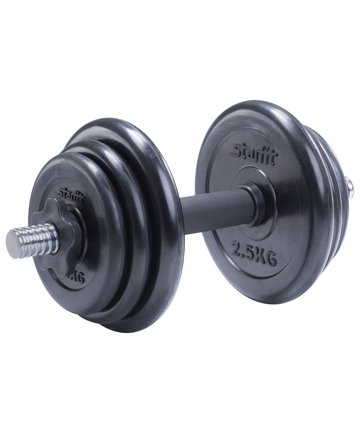 Гантель DB-702 состоит из стального грифа и шести обрезиненных дисков разного веса. Резиновое покрытие повышает срок службы диска, минимизирует шум от занятий. Гантель удобно держать в руке. Нескользящая пластиковая поверхность грифа на месте хвата повышает безопасность тренировок. Широкий шаг резьбы позволяет за считанные секунды поменять вес. Гриф комплектуется пластиковыми замками, которые надежно фиксируют диски на месте.