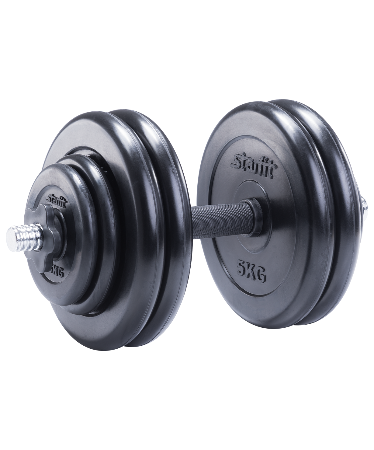 Гантель DB-702 состоит из стального грифа и шести обрезиненных дисков разного веса. Резиновое покрытие повышает срок службы диска, минимизирует шум от занятий. Гантель удобно держать в руке. Нескользящая пластиковая поверхность грифа на месте хвата повышает безопасность тренировок. Широкий шаг резьбы позволяет за считанные секунды поменять вес. Гриф комплектуется пластиковыми замками, которые надежно фиксируют диски на месте.