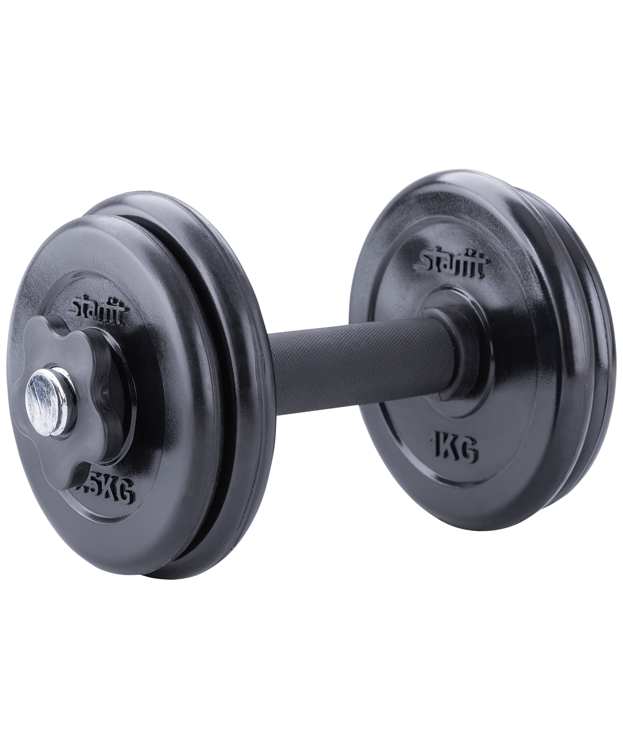 Гантель DB-702 состоит из стального грифа и обрезиненных дисков разного веса. Резиновое покрытие повышает срок службы диска, минимизирует шум от занятий. Гантель удобно держать в руке. Нескользящая пластиковая поверхность грифа на месте хвата повышает безопасность тренировок. Широкий шаг резьбы позволяет за считанные секунды поменять вес. Гриф комплектуется пластиковыми замками, которые надежно фиксируют диски на месте.