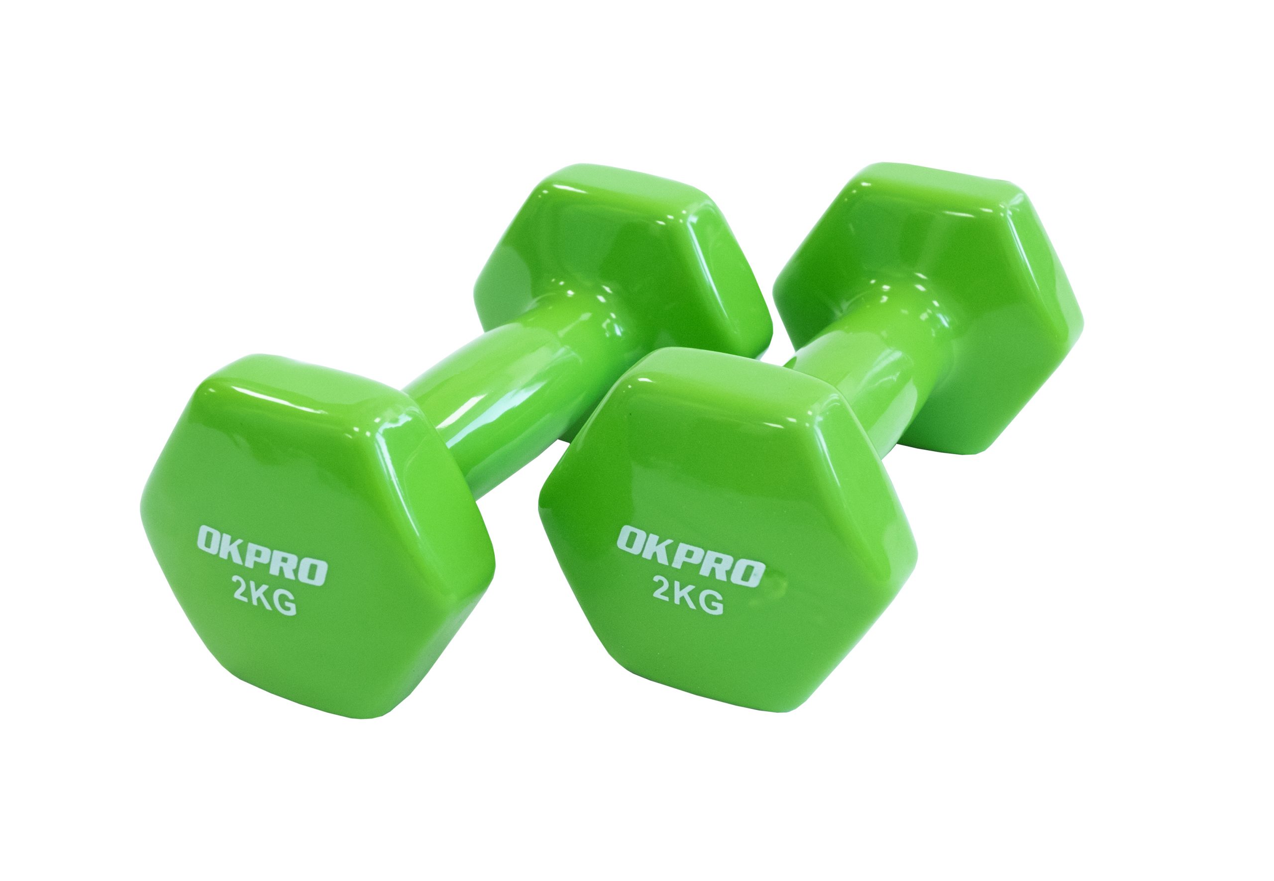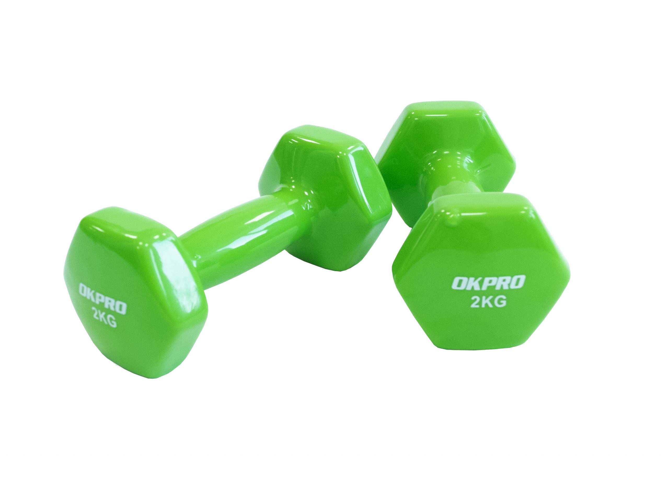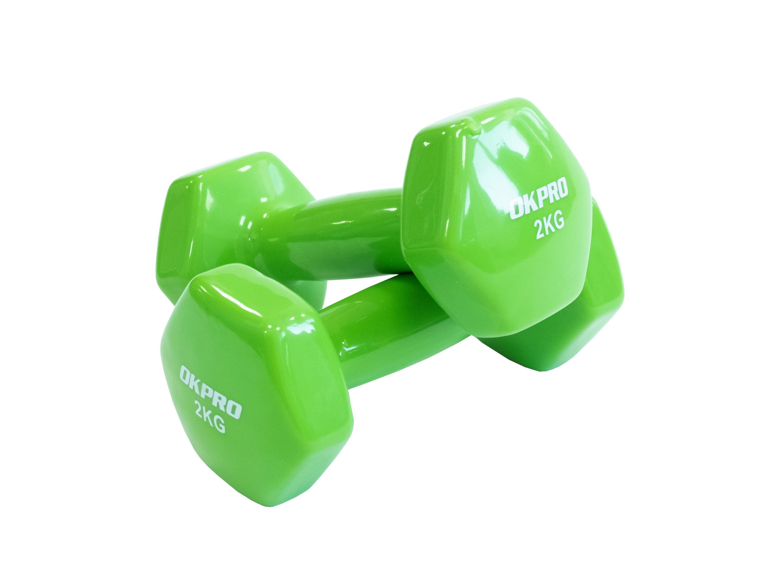 Гантель 2 кг в виниловой оболочке OKPRO для фитнес тренировок. Отлично подойдет для групповых программ и для домашнего тренинга.