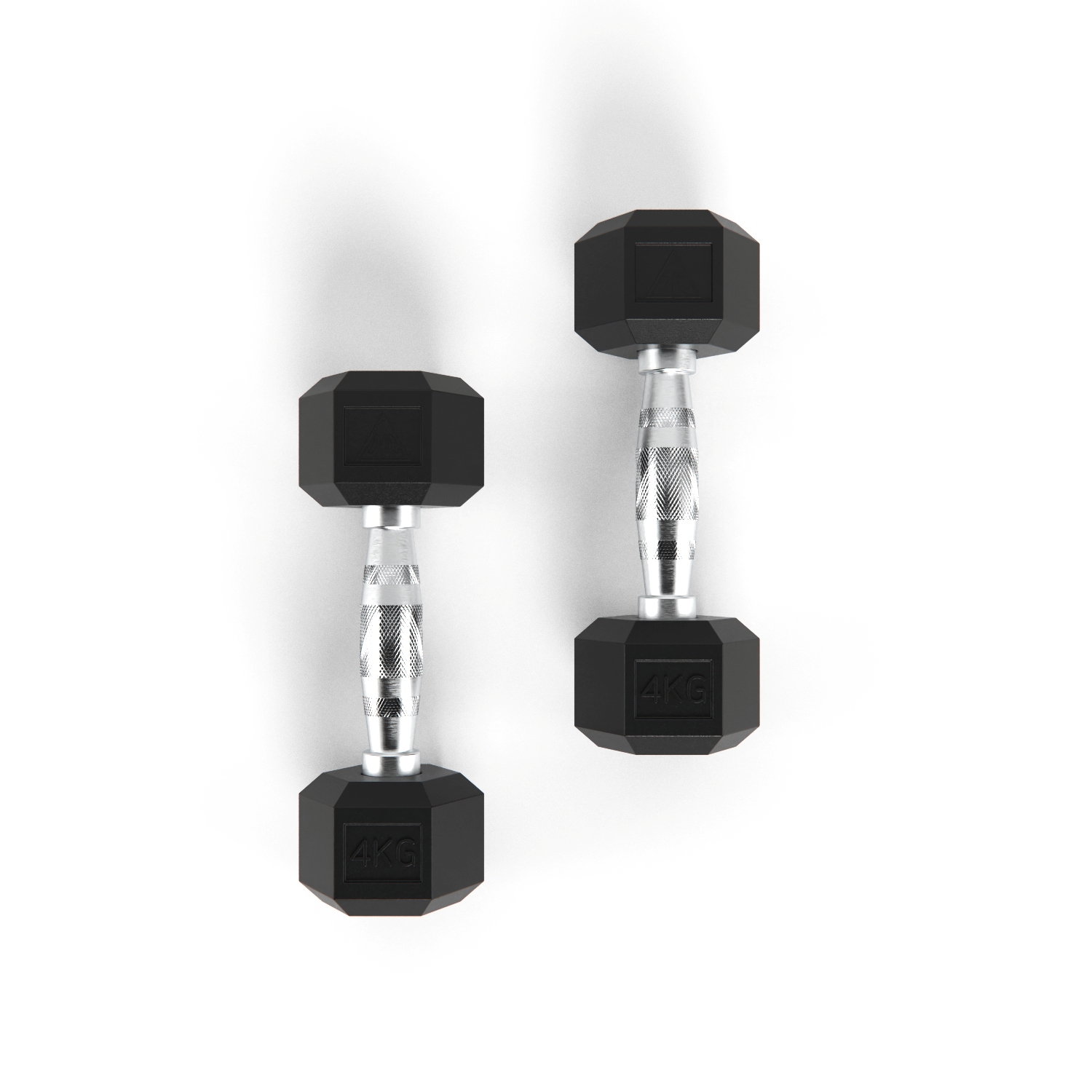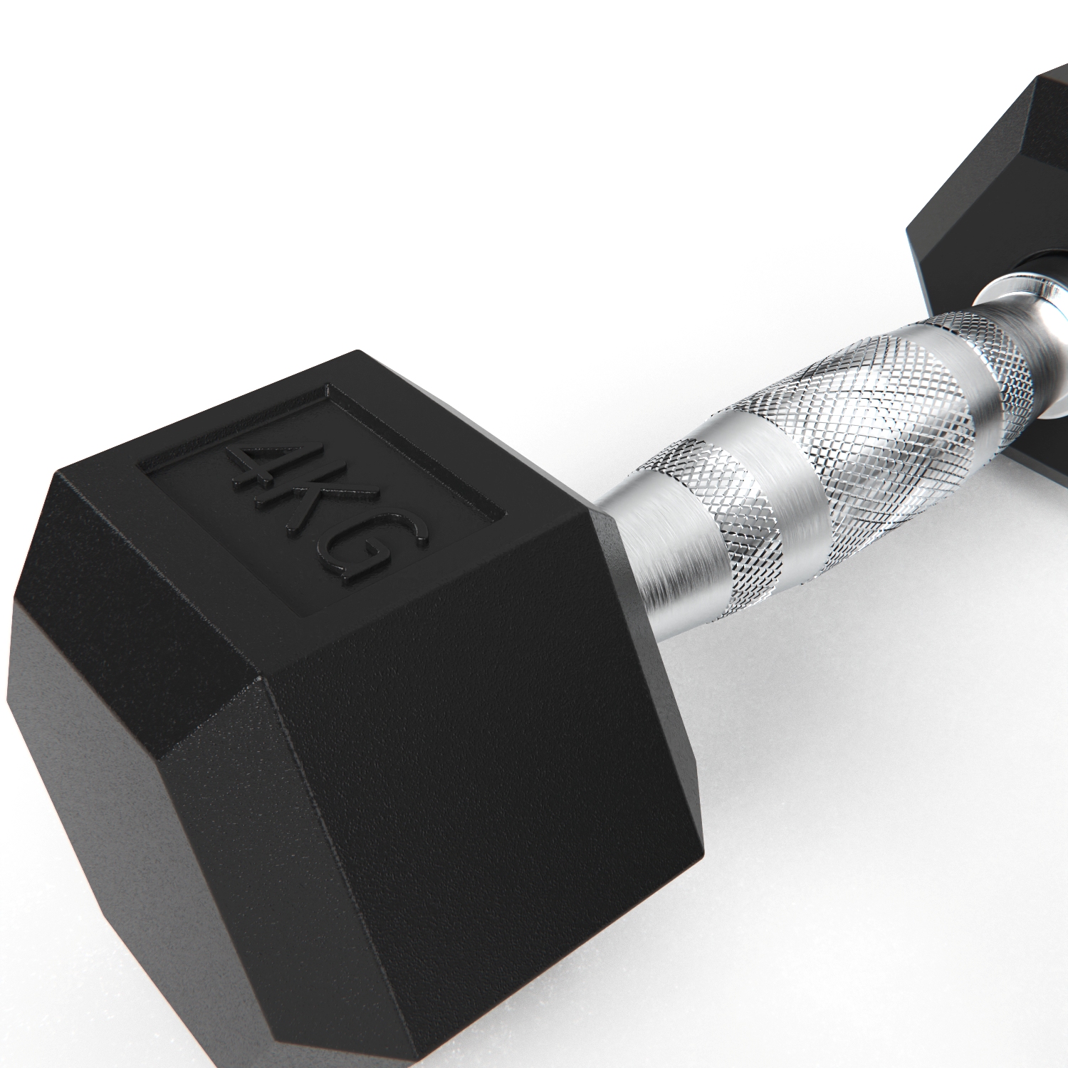 Гантель обрезиненная с хромированной ручкой. Вес гантели 4 кг, в комплекте 2 штуки (пара).