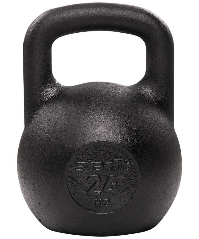 Одинаковый размер гири для всех весов. Эффективный переход в тренировках от одного веса к другому, при котором не нужно привыкать к новому размеру и менять технику упражнений