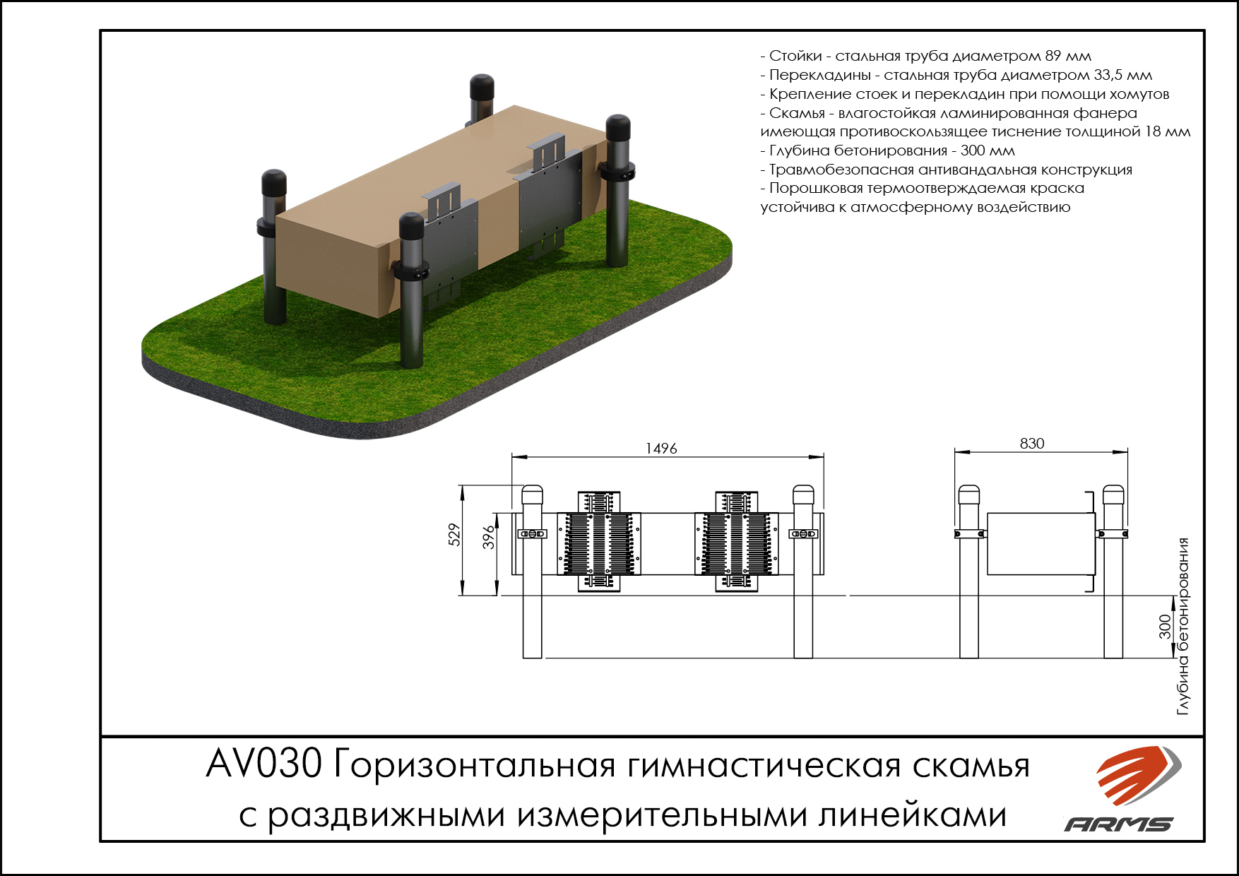 Горизонтальная скамья предназначена для испытания наклон вперед из положения стоя.