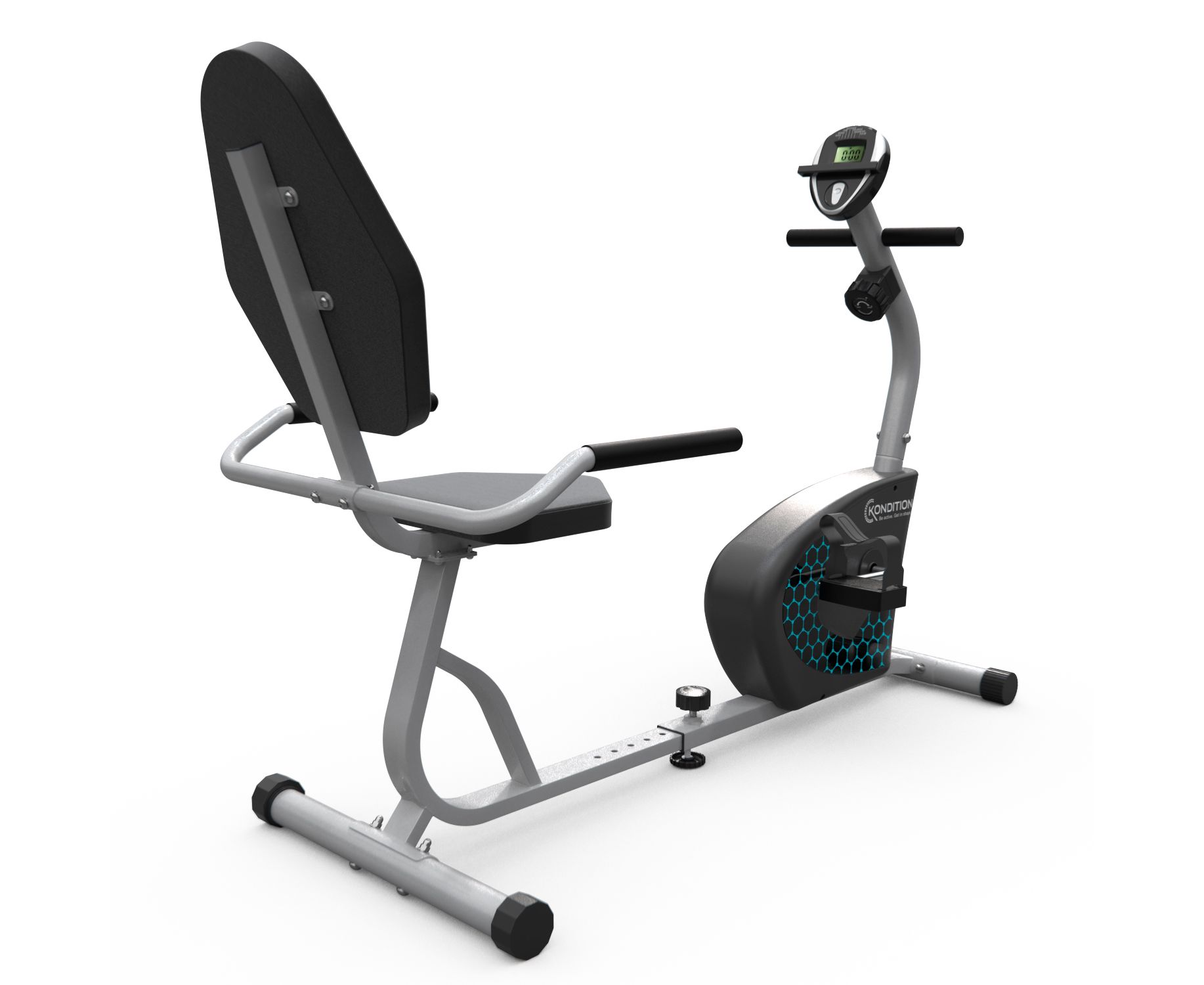 Горизонтальный велотренажёр Kondition предназначен для поддержания физической формы и улучшения здоровья. Максимальный вес пользователя 100 кг.