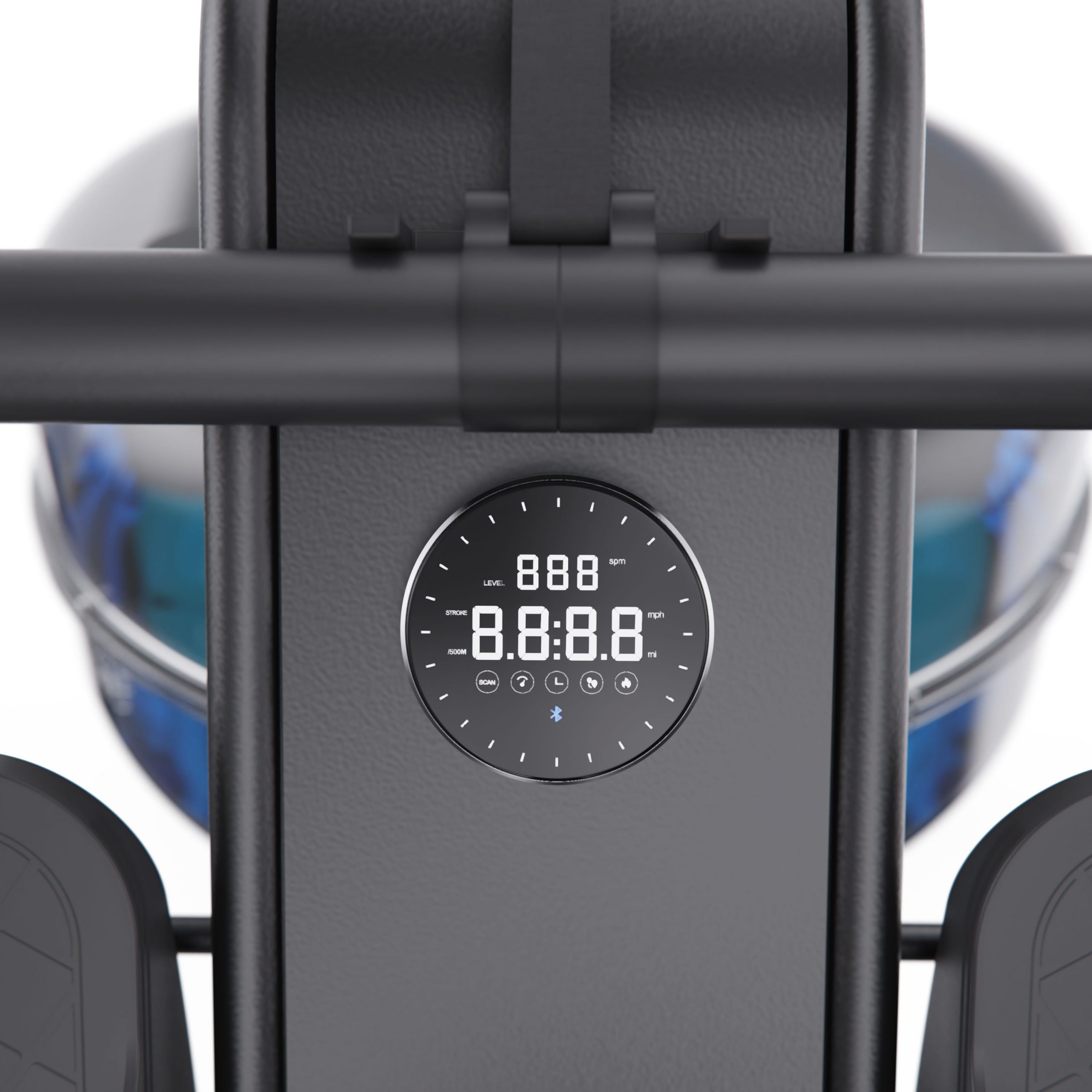 Тренажер оснащен круглым LCD-дисплеем, который отображает ключевые параметры: калории, дистанцию, время, скорость, режим сканирования, время на 500 м, количество гребков, уровень сопротивления и частоту гребков. Подключение по Bluetooth к приложениям FITLOG и KINOMAP позволяет отслеживать прогресс, получать доступ к тренировкам экспертов и персонализировать фитнес-программы.