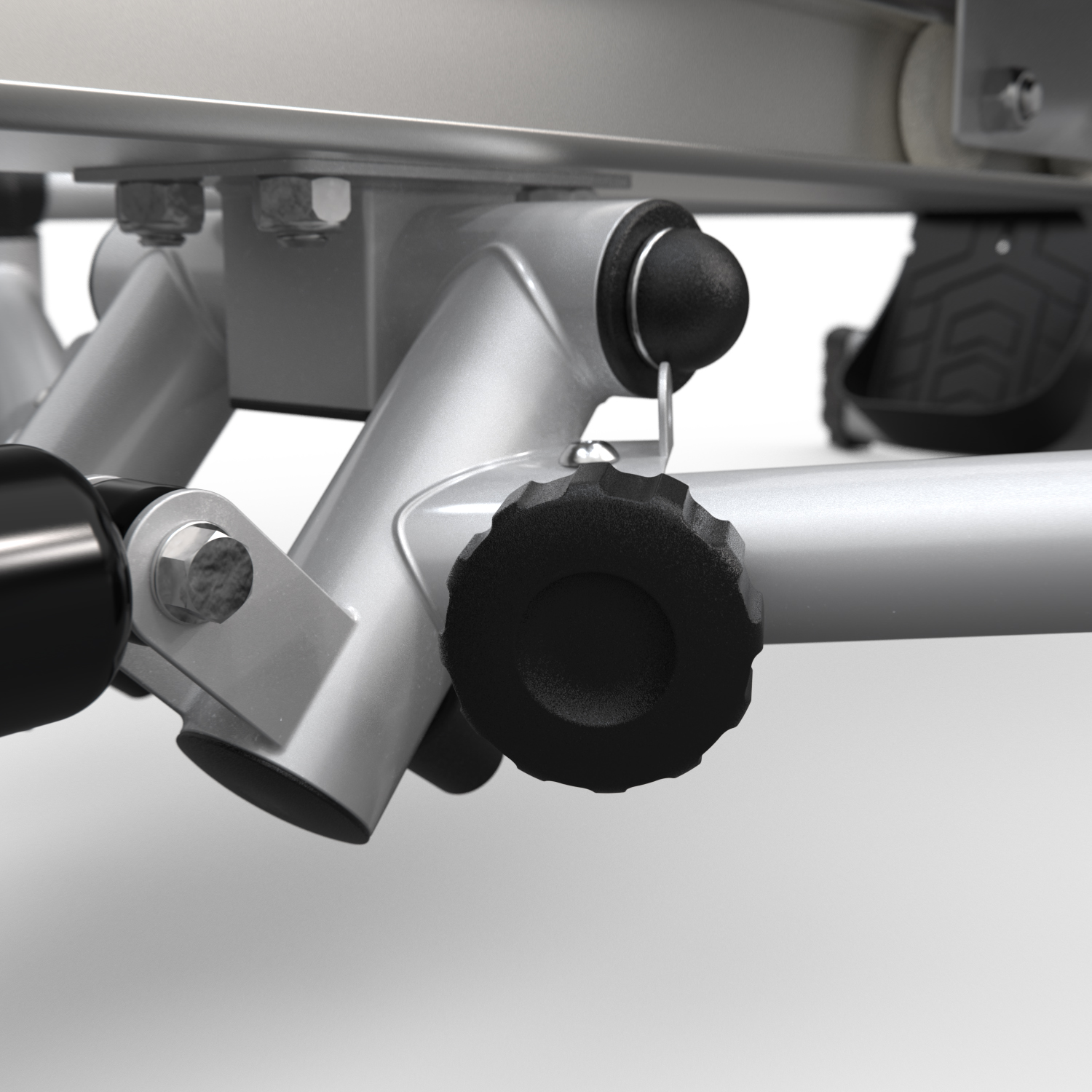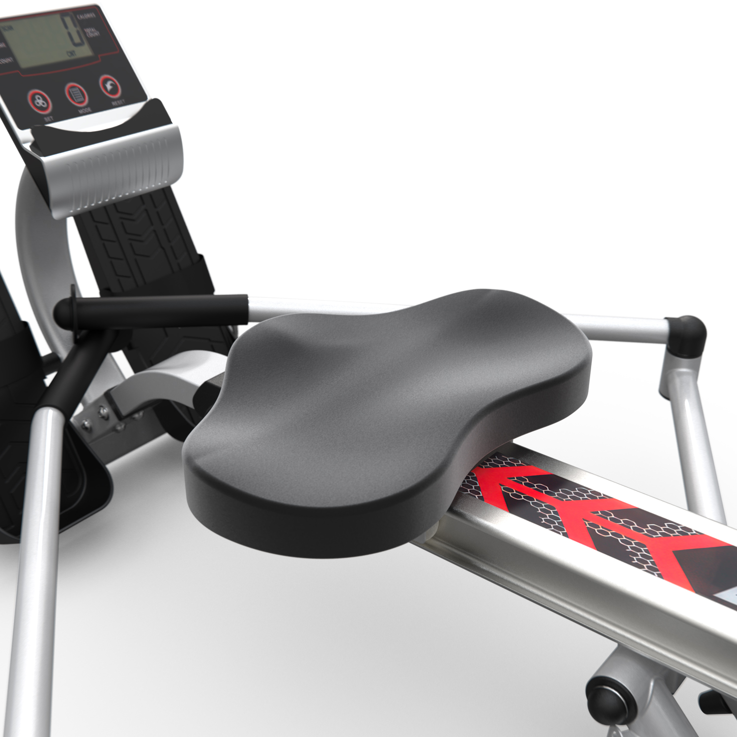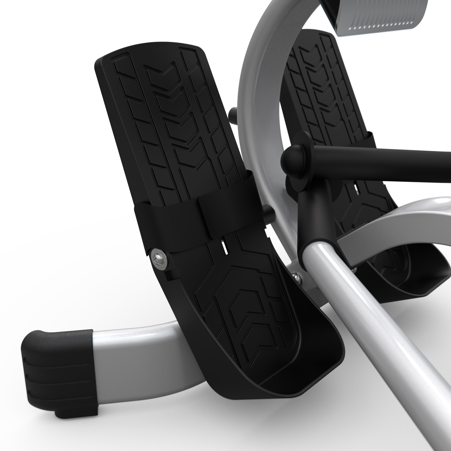 Гребной тренажёр R123A складной, благодаря чему не займёт много места в комнате. Эргономичное сиденье размером 38,5 х 27 см и толщиной 4,7 см, на педалях предусмотрены регулируемые ремешки. Размер педалей — оптимальные 32,5 х 13,4 см, а высота от пола до нижней части составляет 7,6 см. Рукоятки тренажёра имеют диапазон вращения 360°. Эти особенности позволят отрегулировать тренажёр исходя из потребностей пользователя.