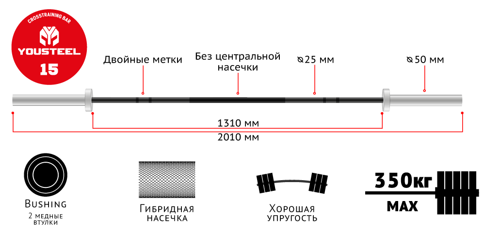Данная модель идеально подходит в качестве тренировочного инструмента для новичков и атлетов средней категории, а профессионалам работающим с большими весами стоит посмотреть на нашу линейку соревновательных грифов.