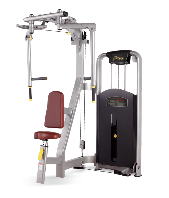 Профессиональный станок для выполнения упражнений на грудь и заднюю дельту. Мощный профиль станины размером 60*120 мм. и 50*100 толщиной 2.5 мм. с двухслойной покраской. Общая надежность тренажера обеспечивается за счет использования только высококачественных компонентов. К примеру, рукоятки выполнены из термопластичного вулканизата TVP — это практически вечный материал. Тросовый блок состоит из надежных роликов с впрессованным высокоточным малошумным подшипником (тип 6202RS) и стального витого троса в PVC оболочке с общим диаметром 5.5 мм. Удобное контурное сидение из искусственной кожи на натуральной подложке регулируется по вертикали. Вес стека — 80 кг. |
