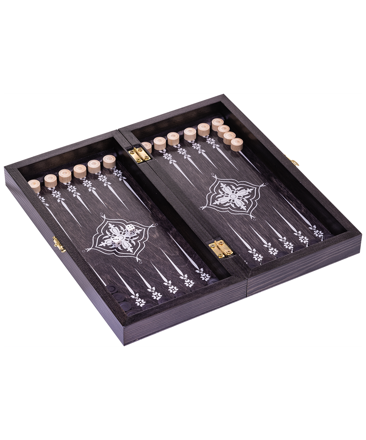 Игра 3 в 1 дорожная станет самым удачным приобретением для тех, кто любит настольные игры. Игра состоит из деревянной доски, пластмассовых обиходных шахмат, двух зар, тридцати деревянных фишек. Доска выполнена из деревянной фанеры хвойных и лиственных пород деревьев, мореной в черный цвет и покрытой лаком, рисунок золотого цвета нанесен с помощью шелкографии. Материал: дерево хвойных и лиственных пород.