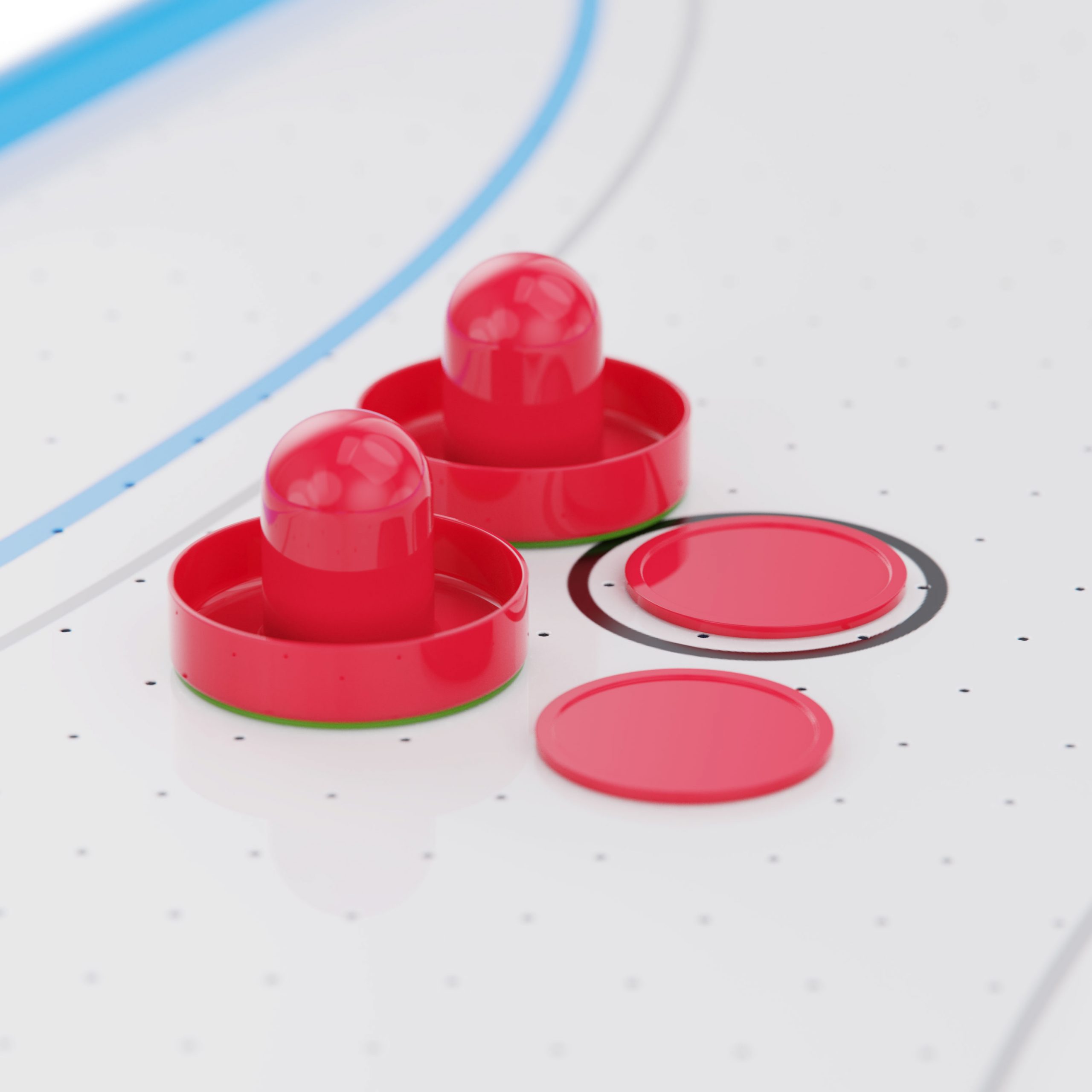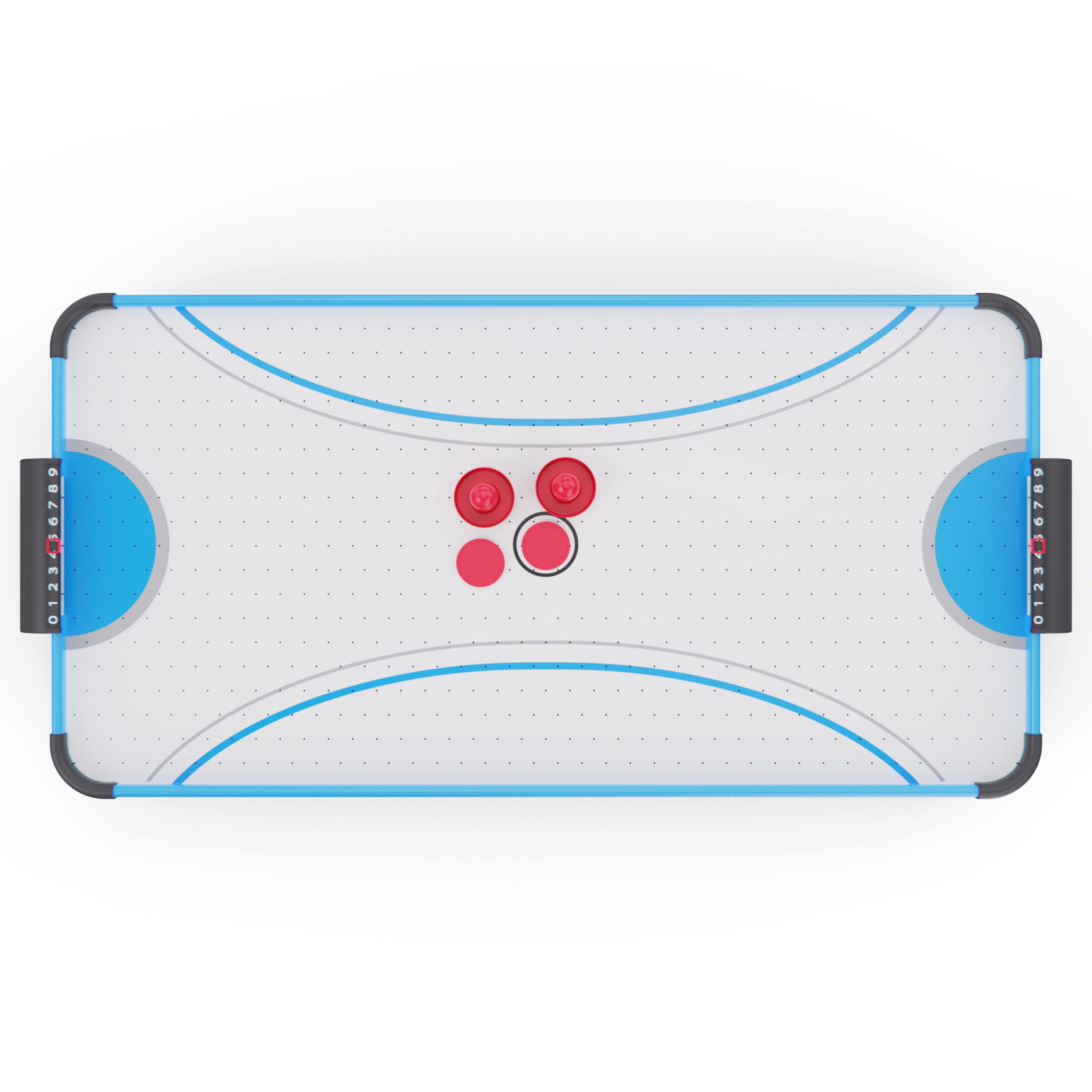 Игровой стол оснащён вентилятором на 220V, создающим воздушную подушку под шайбой. Это обеспечивает лёгкое и быстрое скольжение по полю, делая игру более захватывающей и реалистичной.