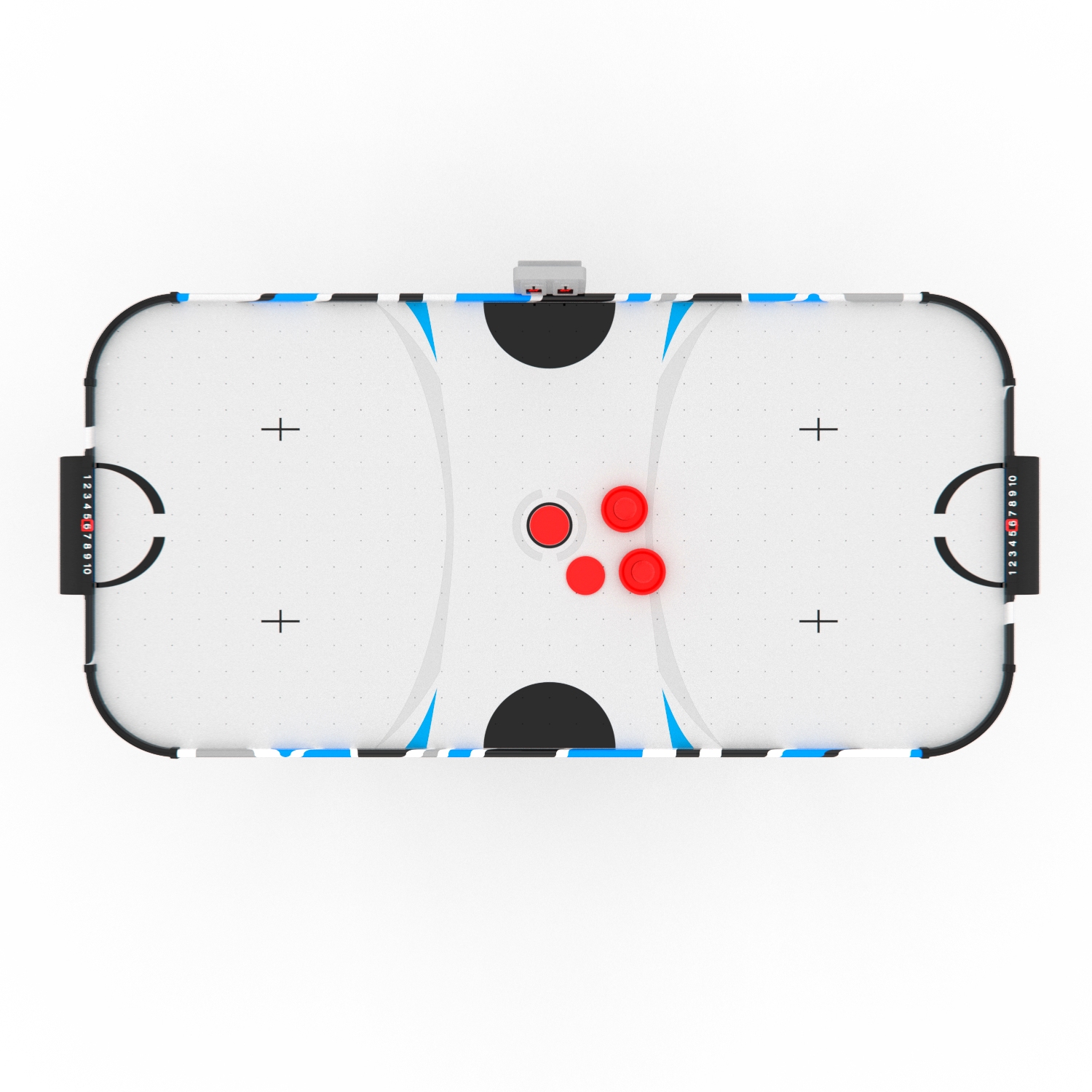 Игровой стол будет не только отличной покупкой для себя, но и прекрасным подарком. Игра в аэрохоккей очень эмоциональная, захватывающая и проходит на больших скоростях. Почувствуйте звуки и атмосферу знаменитой и популярной игры! Аэрохоккей является отличным развлечением дома или на даче. Аэрохоккей BALTICA оборудован электронным табло для подсчета забитых шайб. И дополнительно возле каждого игрока установлен механический счетчик. Корпус выполнен из специально обработанного МДФ, сверху покрытого прочным ламинатом. Мощный компрессор подает воздух через отверстия по всей поверхности стола. Напряжение 220В. Стол комплектуется необходимым для игры набором аксессуаров: 2 биты и 2 шайбы красного цвета.