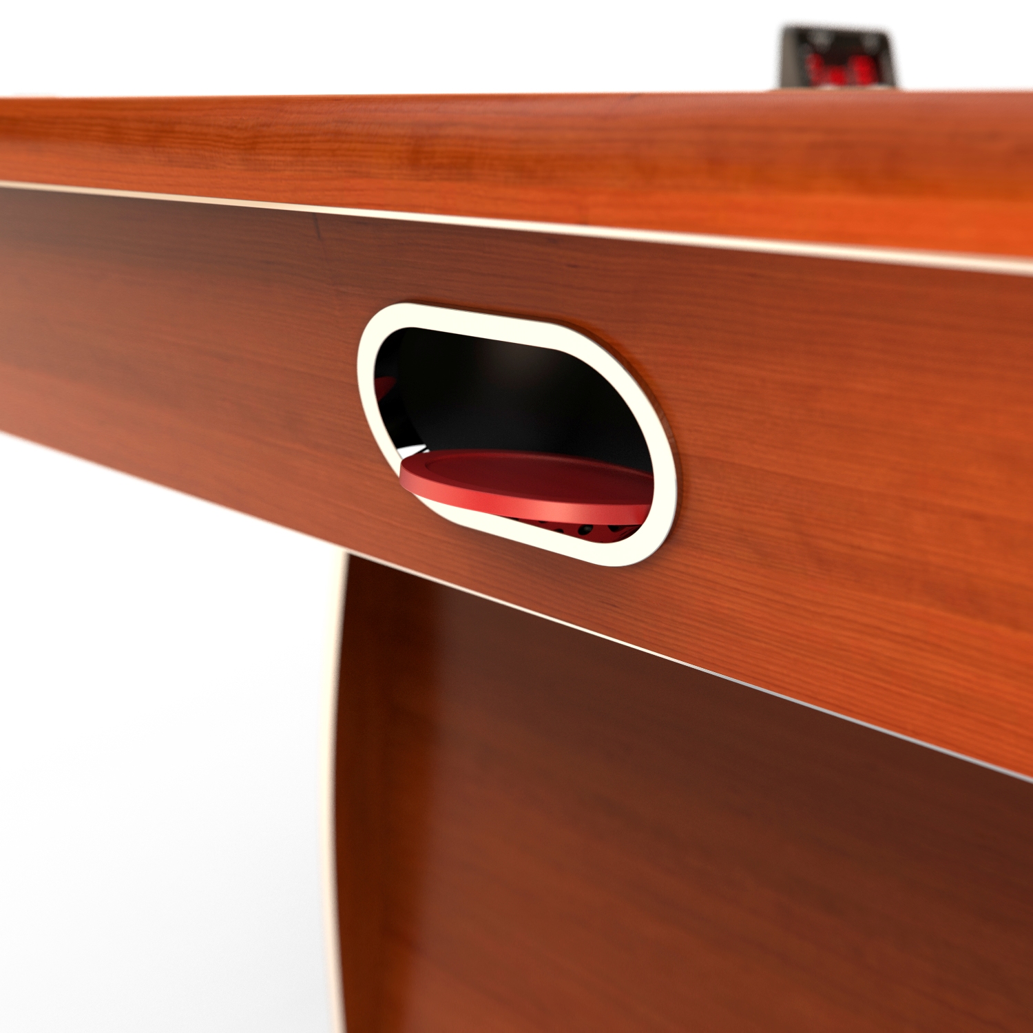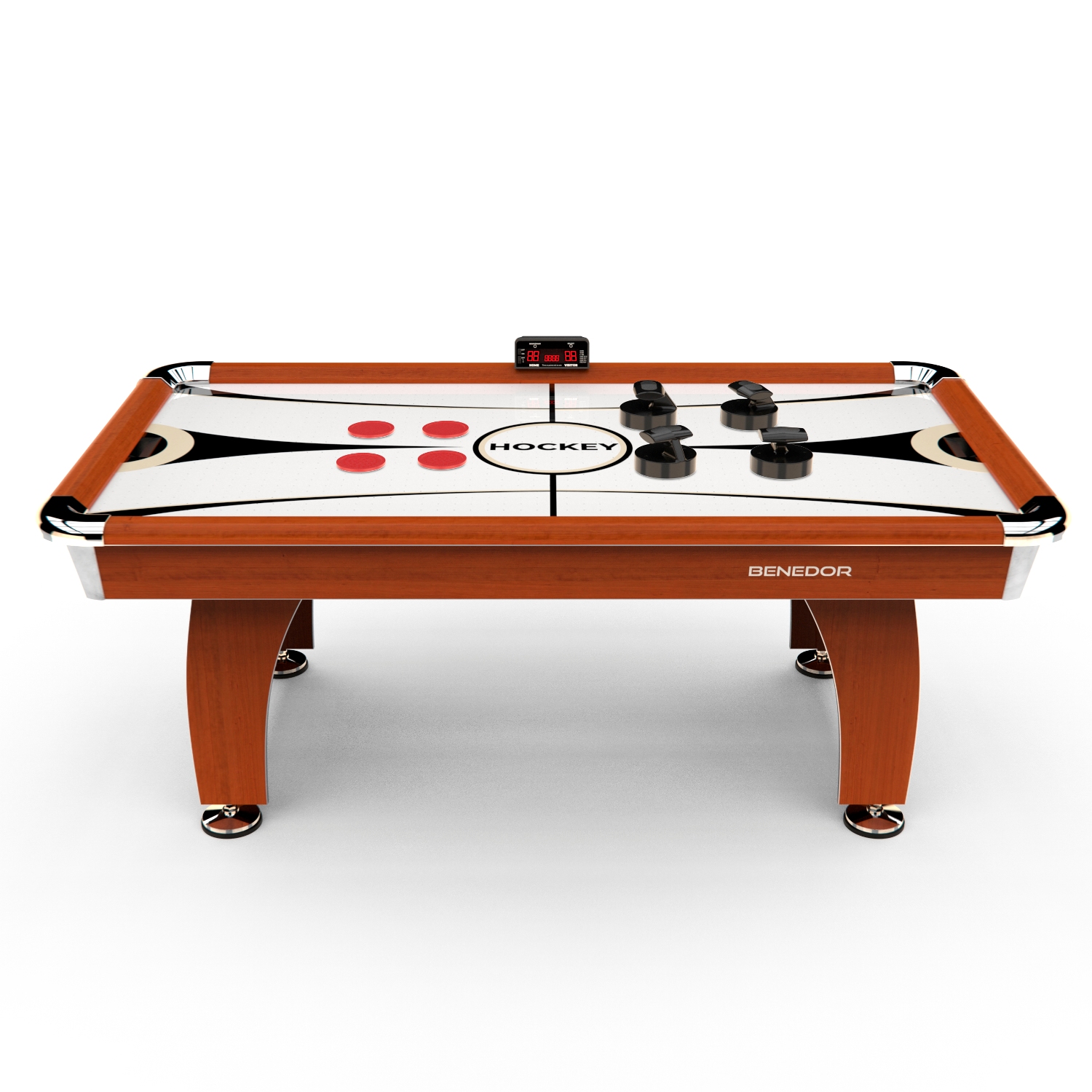 Игровой стол аэрохоккей DFC BENEDOR – это самый большой стол для домашнего использования в линейке DFC . Он выполнен из дерева из темно вишневого дерева (МДФ) с нанесением защитного покрытия. Внутренние борта сделаны из пластика для большей упругости отскока шайбы. Боковые стойки покрыты хромом. Стол отлично облагородит любой интерьер.