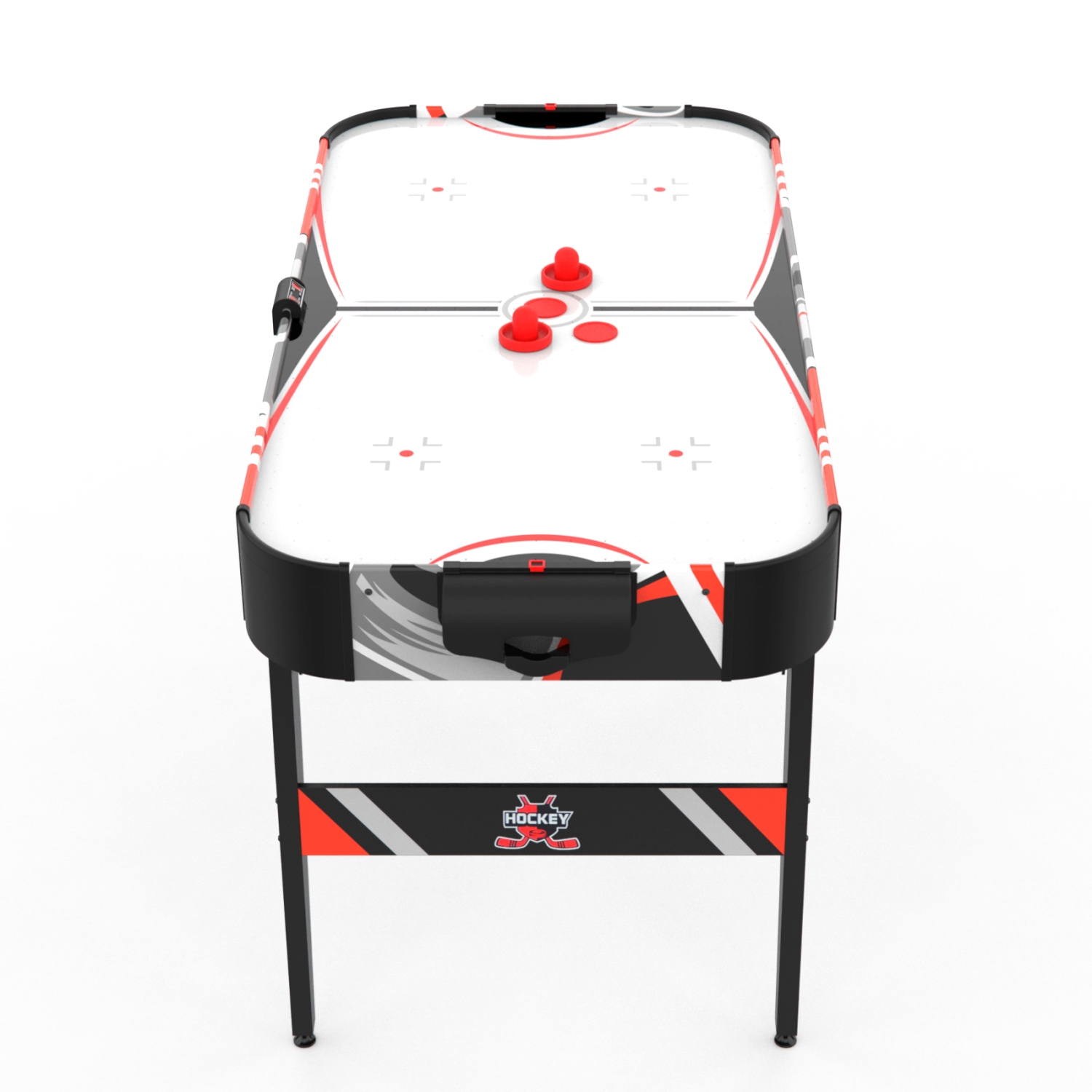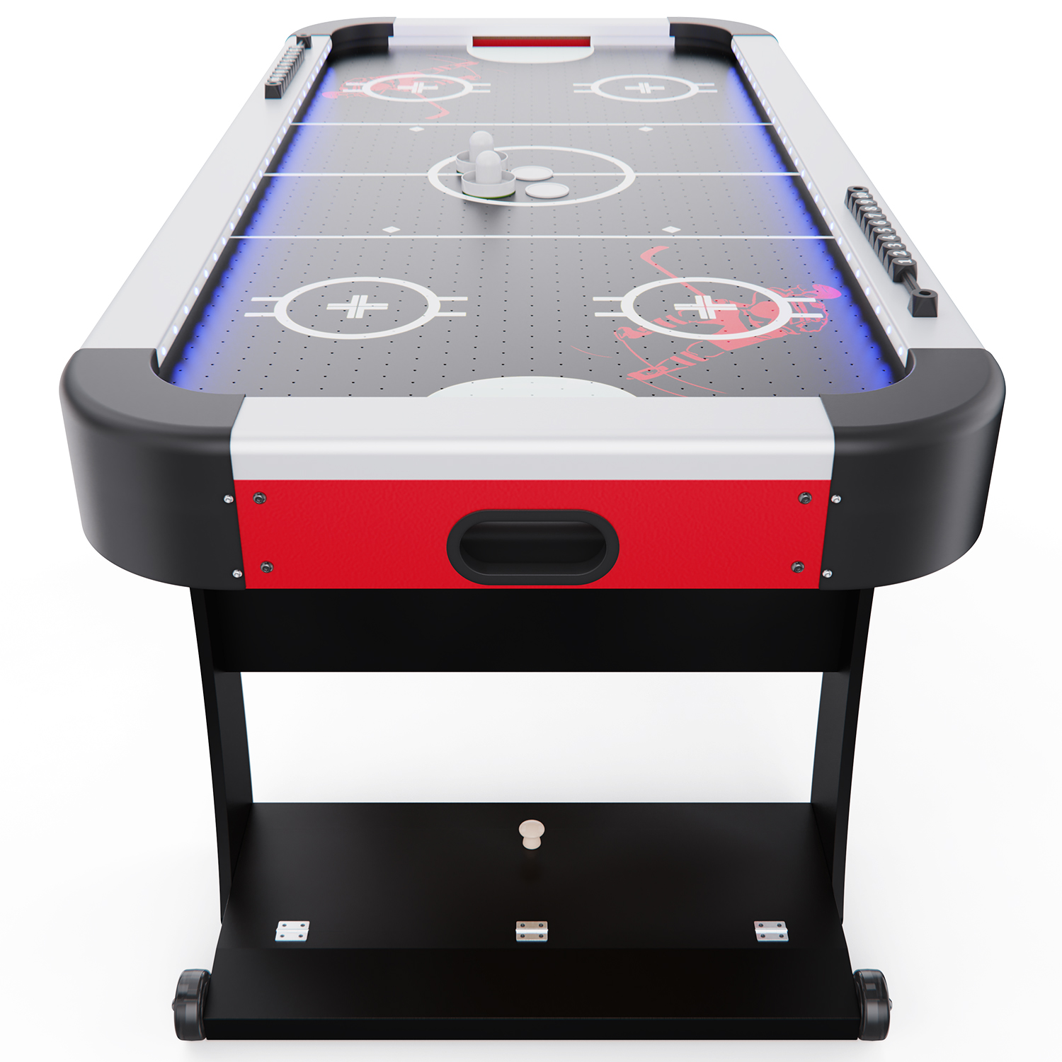 Благодаря удобным размерам (152,5 x 76 x 81 см) стол идеально подходит для домашнего использования, а складная конструкция стола особенно удобна для тех, кто хочет экономить место — стол можно легко сложить и убрать с помощью транспортировочных роликов до следующей игры. Хоккей станет отличным вариантом для семейных вечеров, дружеских турниров и веселого досуга.