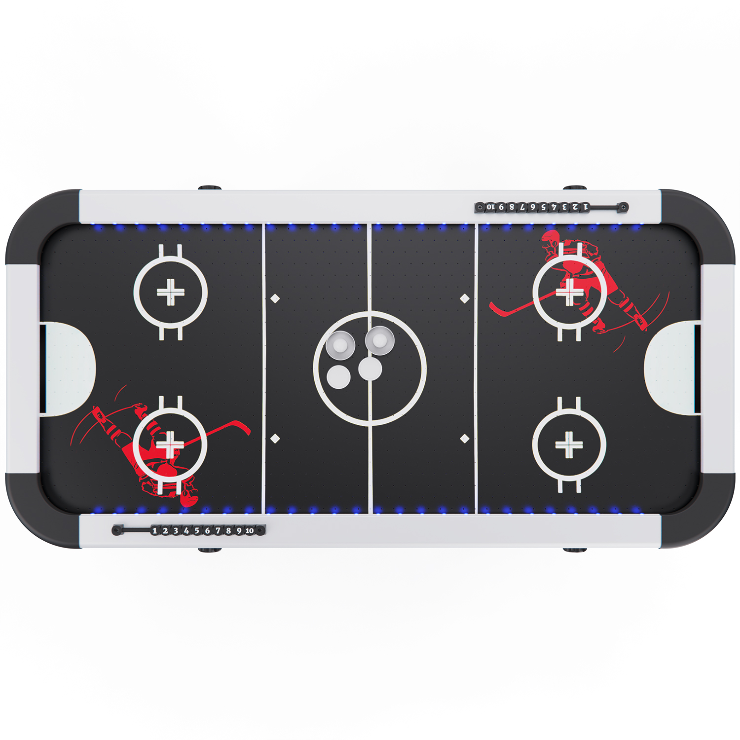 Встроенный вентилятор на 220В создает воздушный поток, который позволяет шайбе легко и быстро скользить по поверхности. Это делает игру максимально реалистичной и динамичной. Эффектная подсветка игрового стола создает атмосферу настоящего аркадного зала и делает игру еще более захватывающей, особенно в темное время суток.
