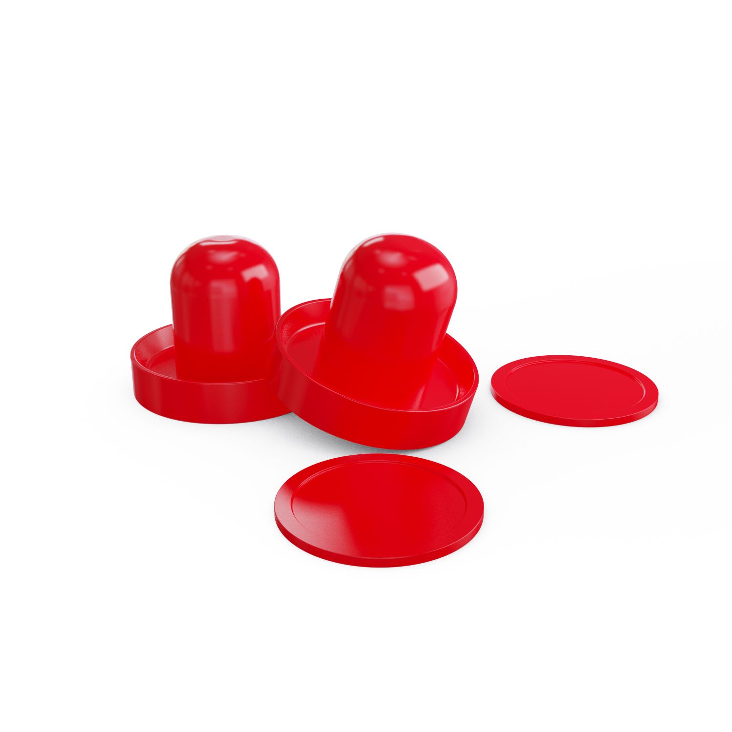 Стол комплектуется необходимым для игры набором аксессуаров: 2 биты и 2 шайбы красного цвета.