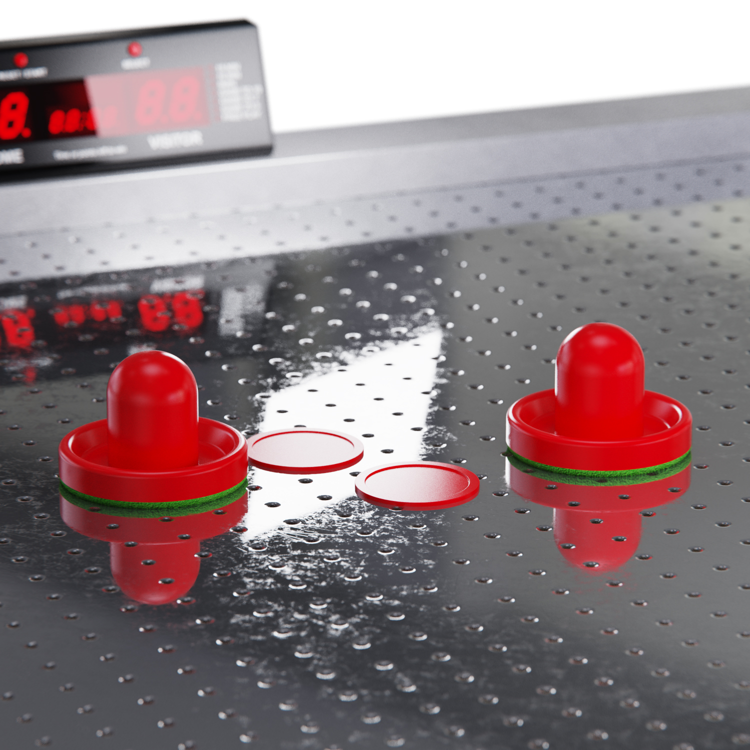 В качестве аксессуаров к столу Opal прилагаются 4 красные биты и 4 красные шайбы для игры. Стол оснащен двигателем вентилятора на 220В для обеспечения движения шайб по игровому полю, а также электронным озвучиванием для создания атмосферы реального хоккейного матча. Благодаря регулируемым ножкам, стол легко устанавливается на неровной поверхности, обеспечивая устойчивость и комфорт во время игры.