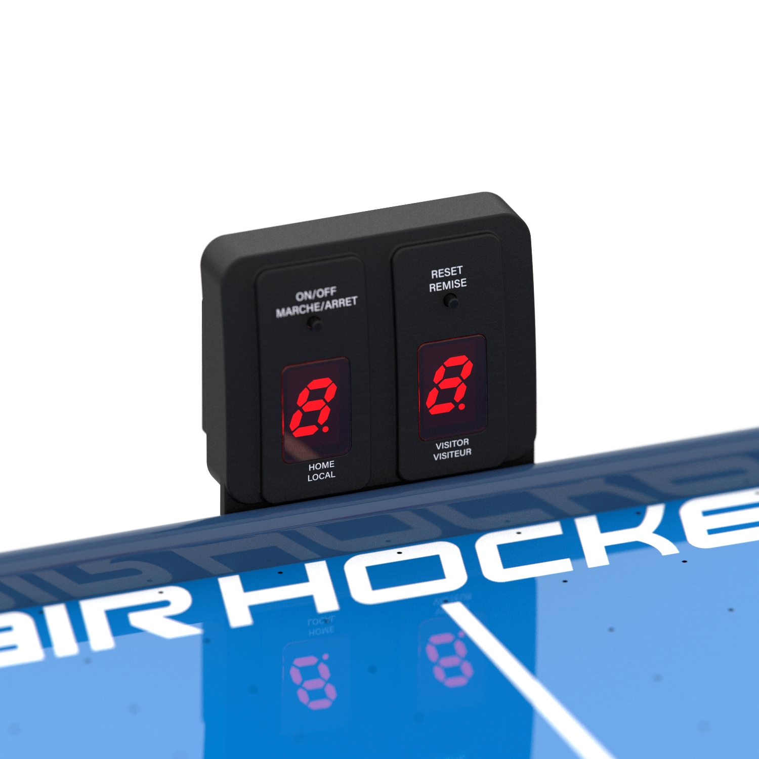 Игровой стол — аэрохоккей DFC ZONE оборудован электронным табло для подсчета забитых шайб во время игры. Корпус выполнен из специально обработанного МДФ, сверху покрытого прочным ламинатом. Воздушный вентилятор подает воздух через отверстия по всей поверхности стола. Напряжение: 220В (через адаптер)