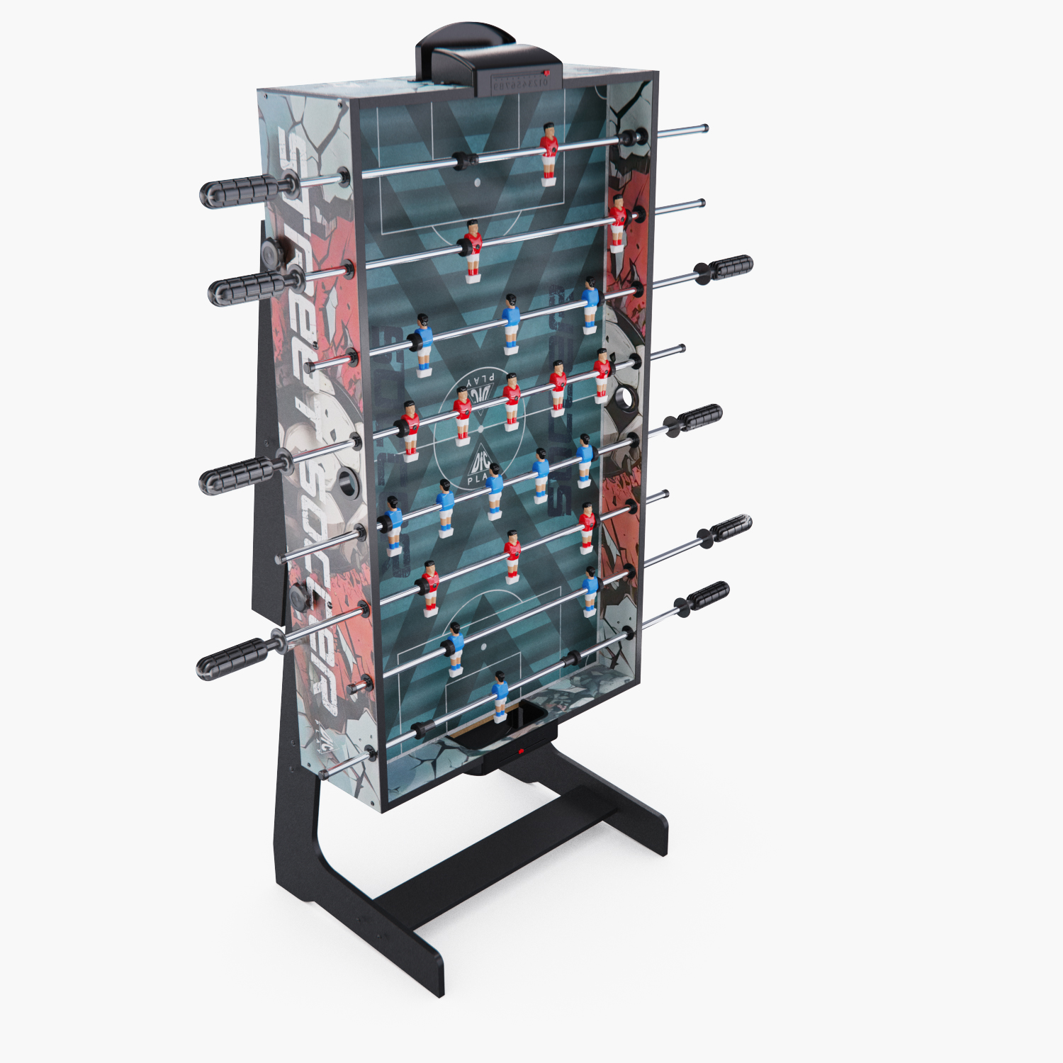 Ламинированное ПВХ покрытие игрового поля придает столу привлекательный вид и повышает его износостойкость. Размеры игрового поля составляют 104 х 58 см, а его толщина 3 мм, что делает игру комфортной и захватывающей. Благодаря складной конструкции стол легко сложить и убрать в целях экономии пространства дома.