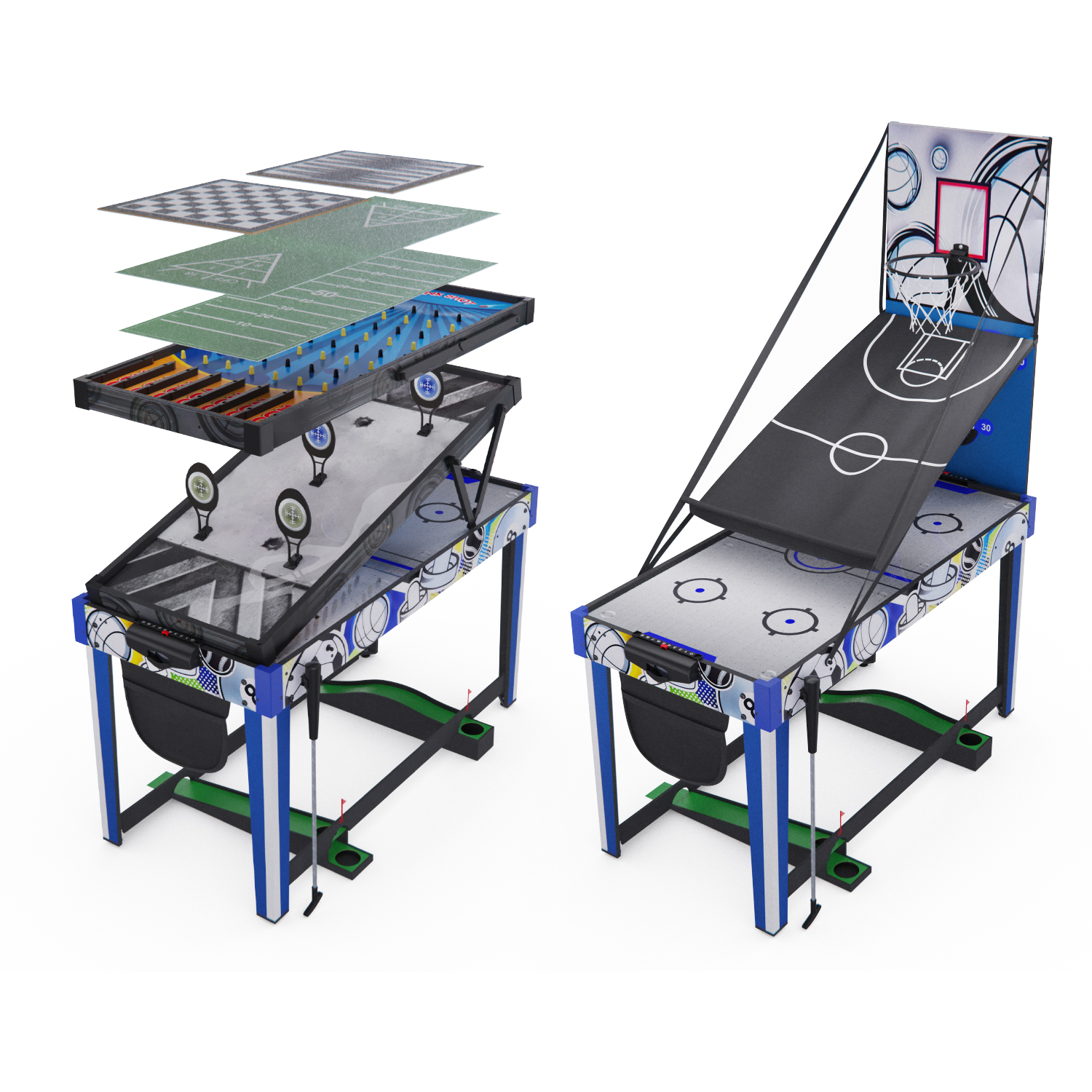 Игровой стол-трансформер DFC UY10185BL — универсальное и компактное решение для домашних игр и активного досуга. Он сочетает несколько популярных развлечений, позволяя разнообразить отдых и проводить время всей семьёй.