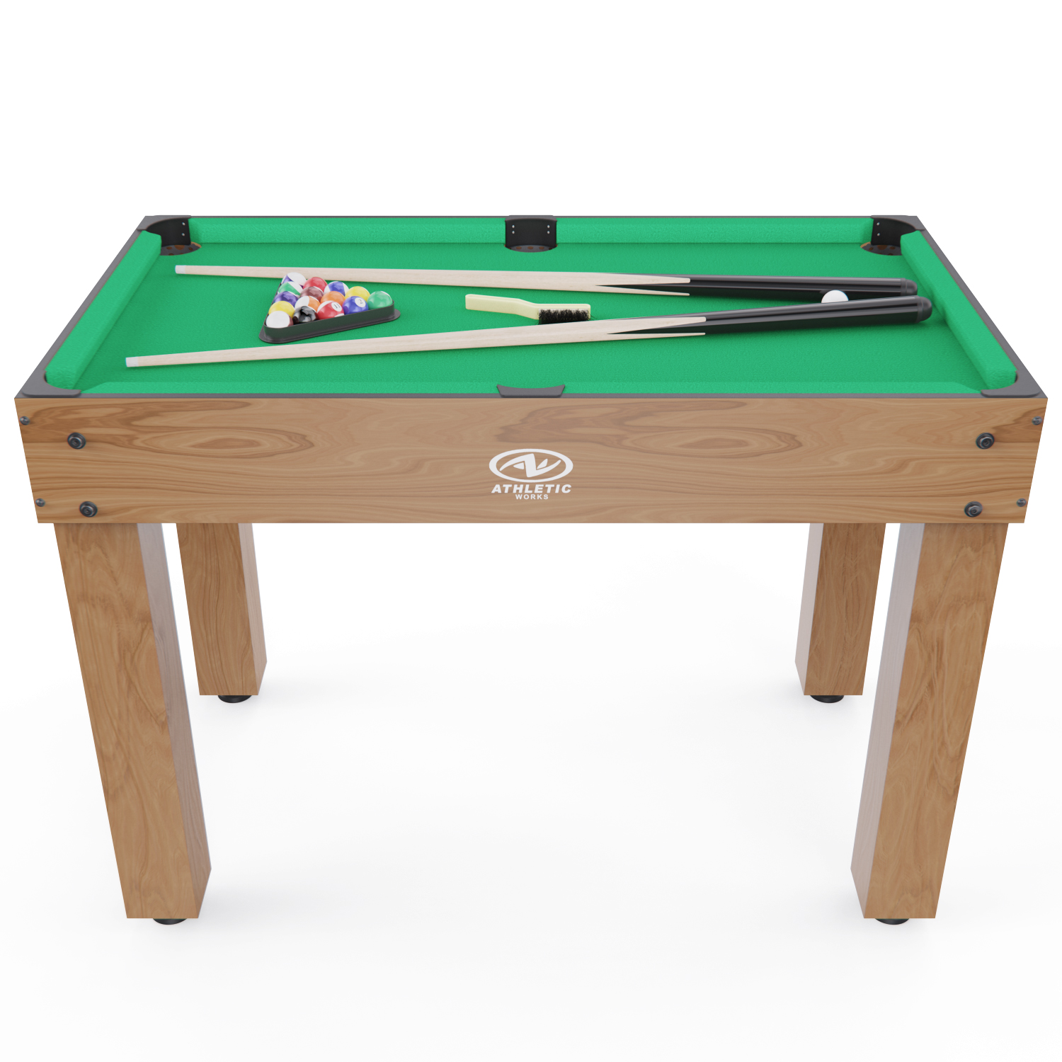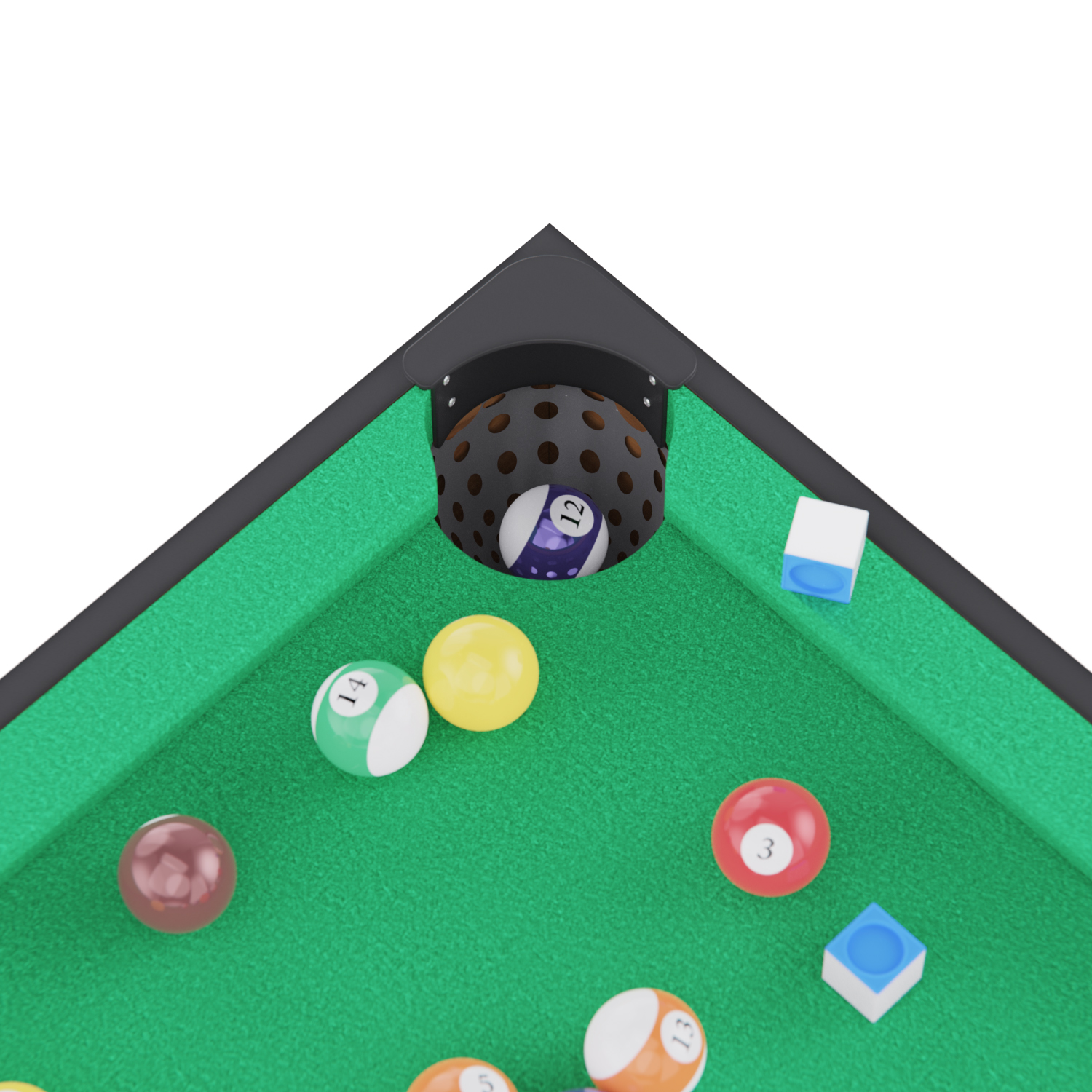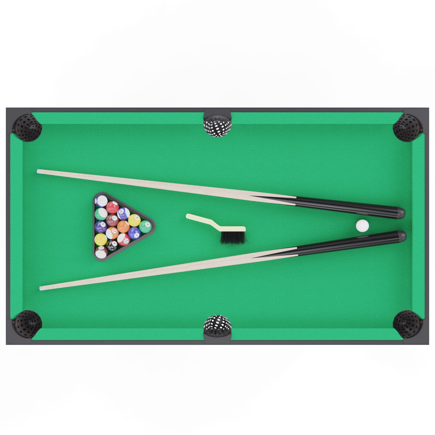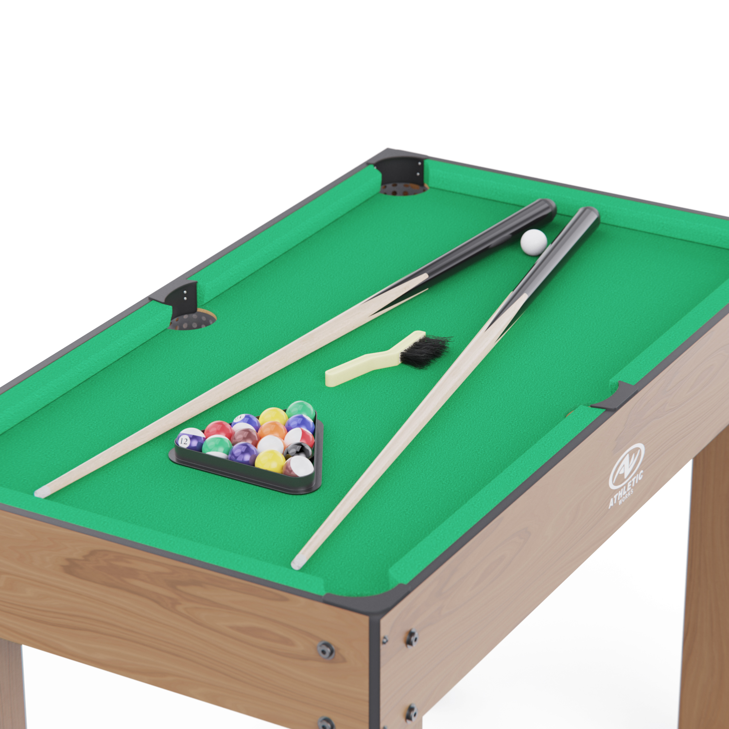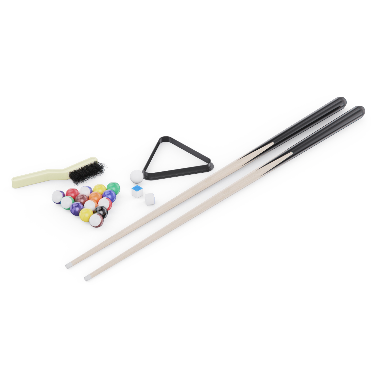 В набор входят: 2 футбольных мячика, 2 теннисные ракетки, 2 мяча для настольного тенниса, комплект бильярдных шаров, треугольник для их выравнивания, 2 кия, щетка для ухода за покрытием и 2 мелка. Всё необходимое для начала игры — уже в комплекте!