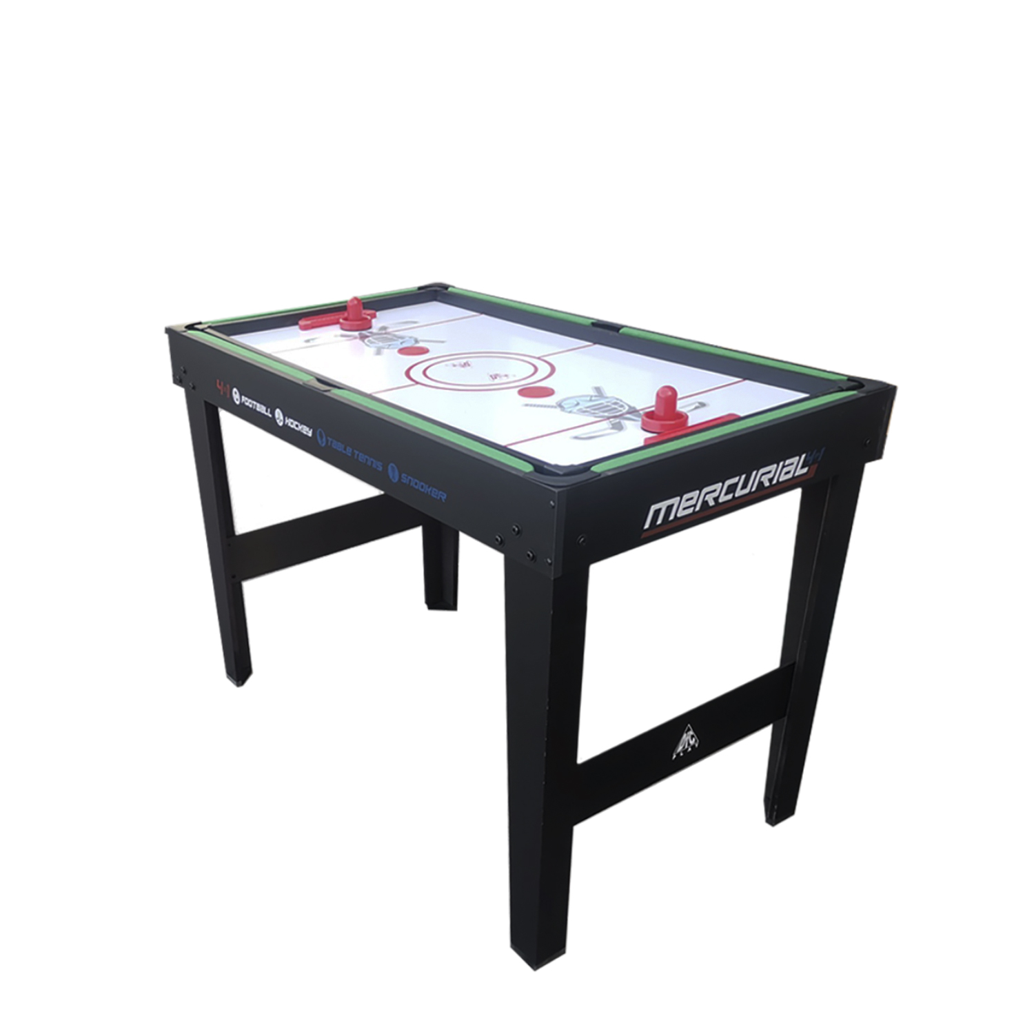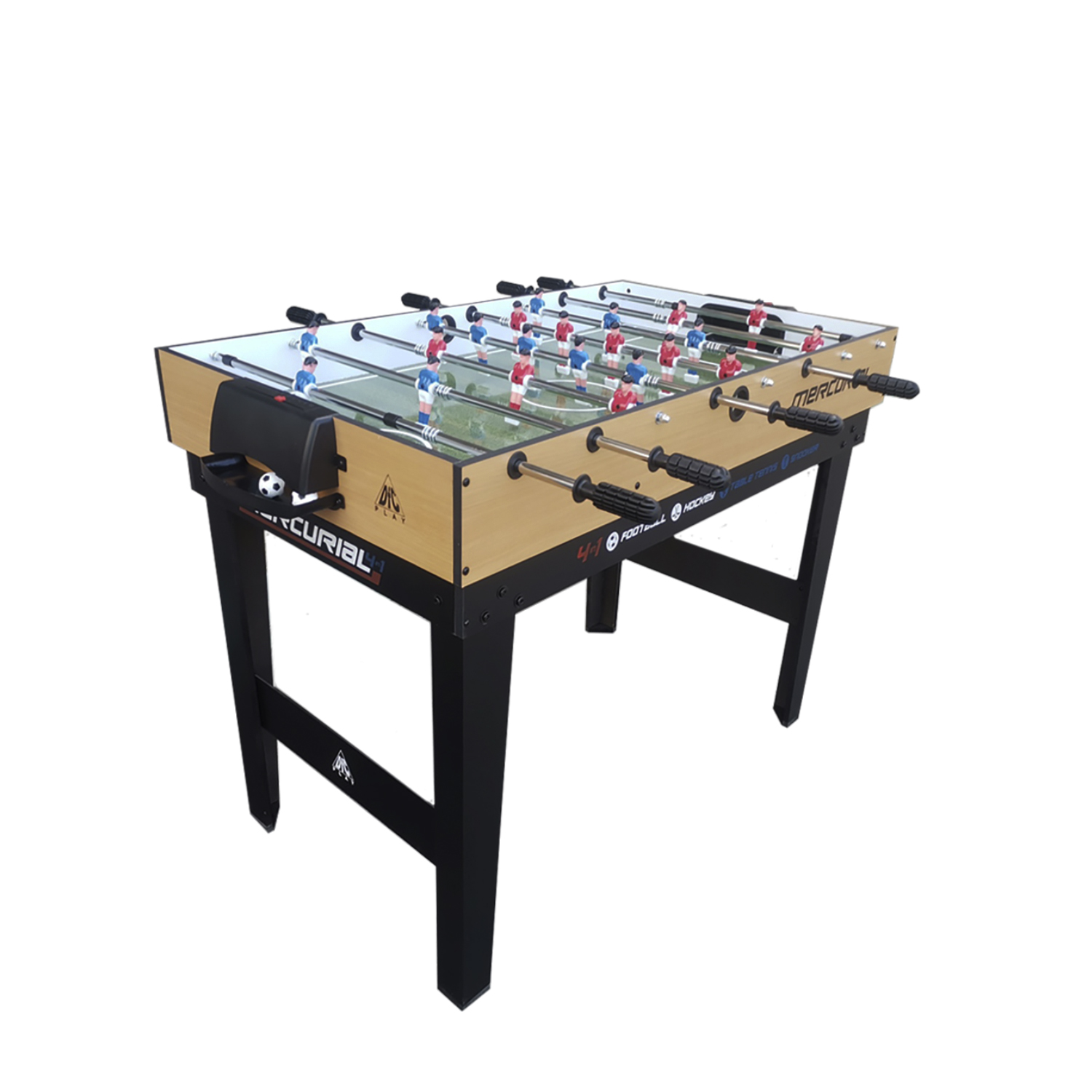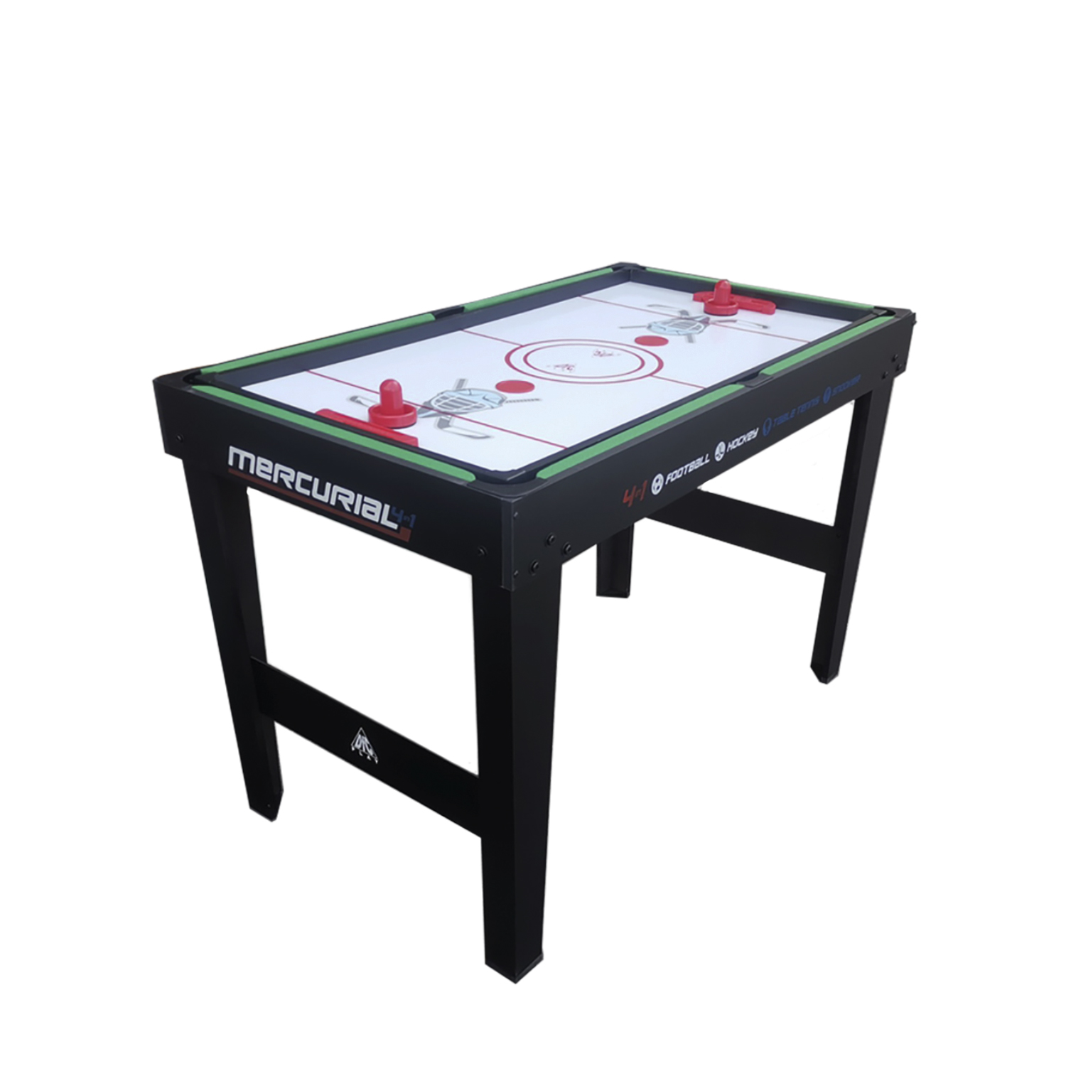 Многофункциональный игровой стол MERCURIAL 4ft — то, что нужно для большой компании! Играйте в футбол, бильярд, настольный теннис и аэрохоккей на одном столе, легко меняя игровые поля. Яркое оформление и стильный дизайн сделают игру ещё более увлекательной.