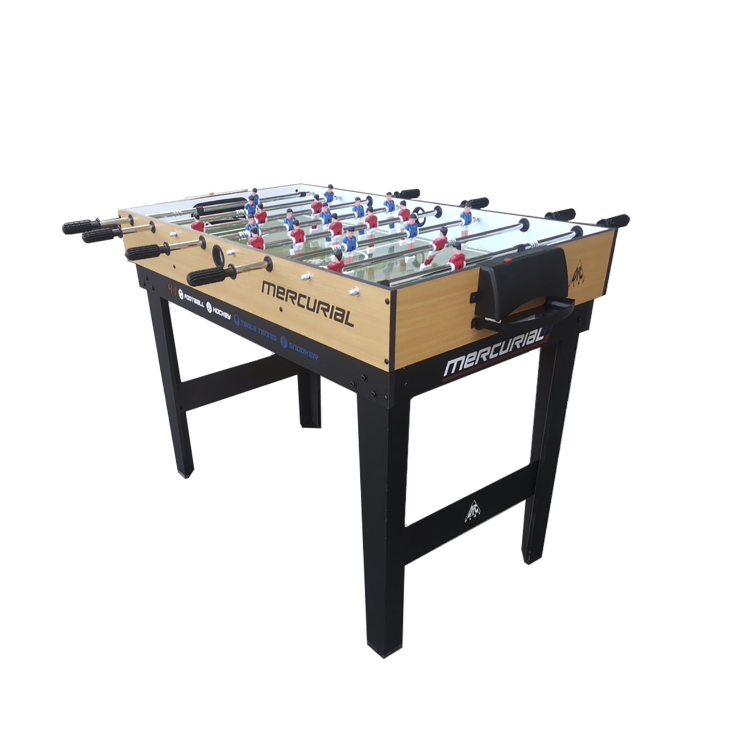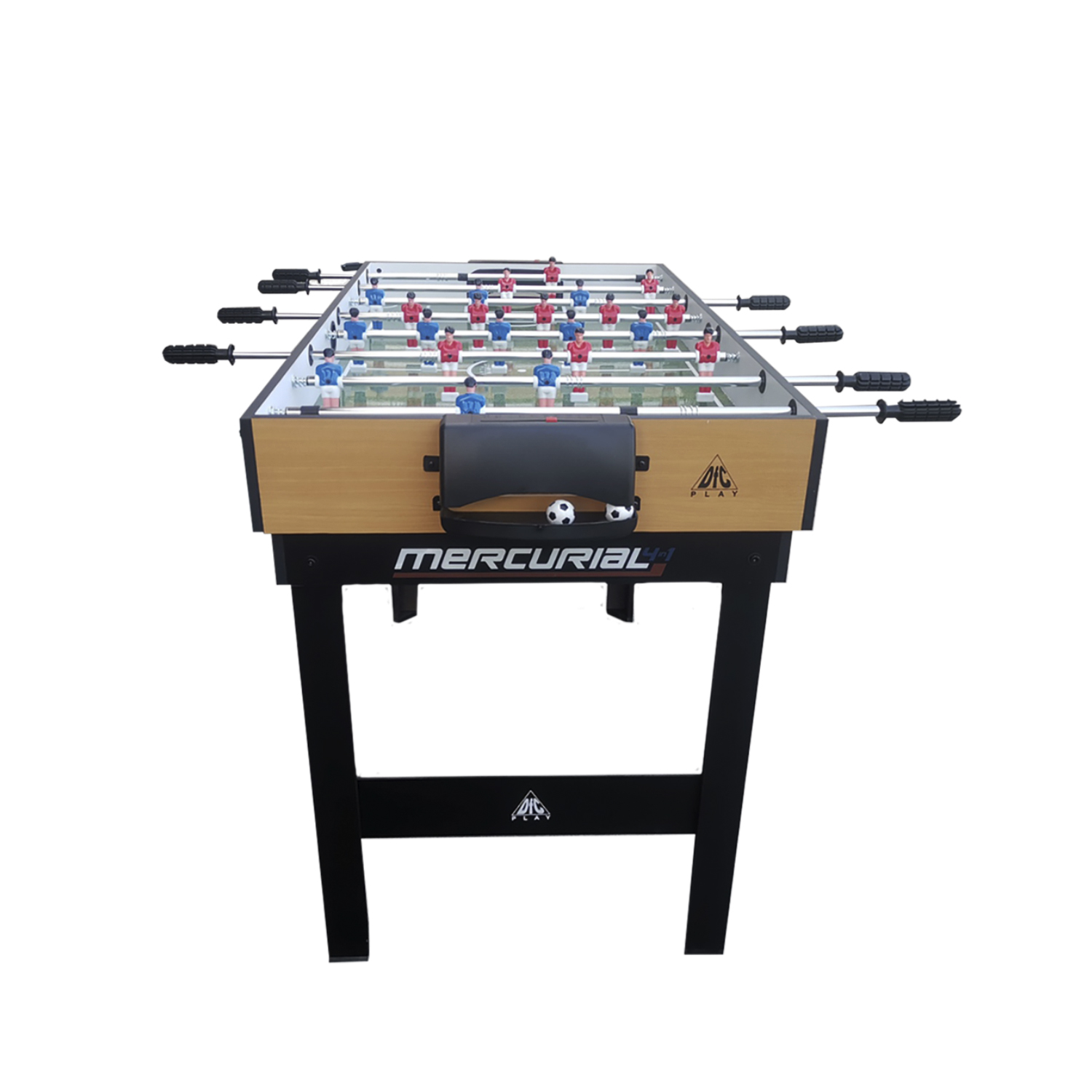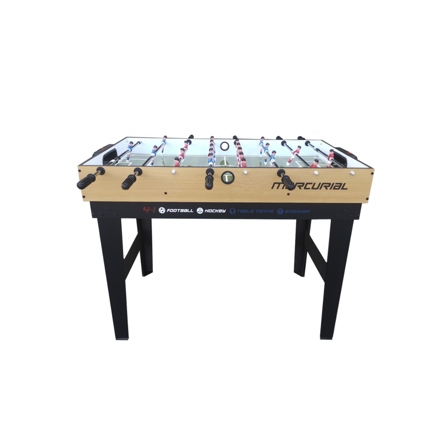 Многофункциональный игровой стол MERCURIAL 4ft — то, что нужно для большой компании! Играйте в футбол, бильярд, настольный теннис и аэрохоккей на одном столе, легко меняя игровые поля. Яркое оформление и стильный дизайн сделают игру ещё более увлекательной.