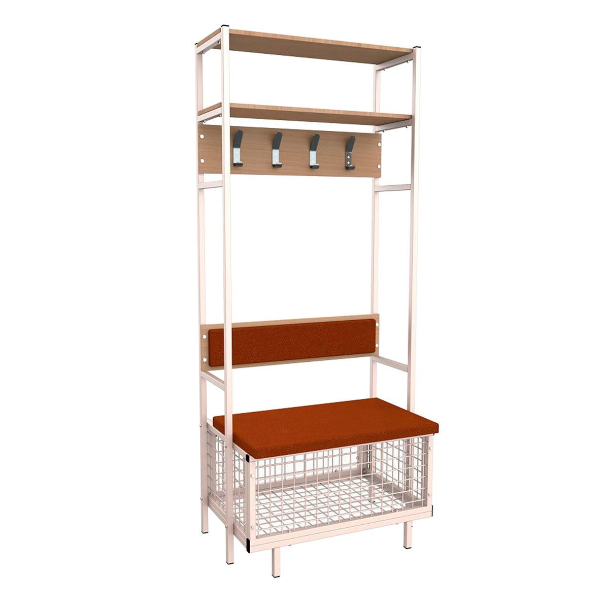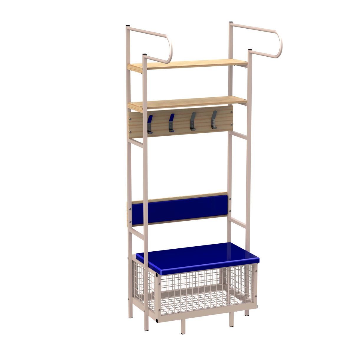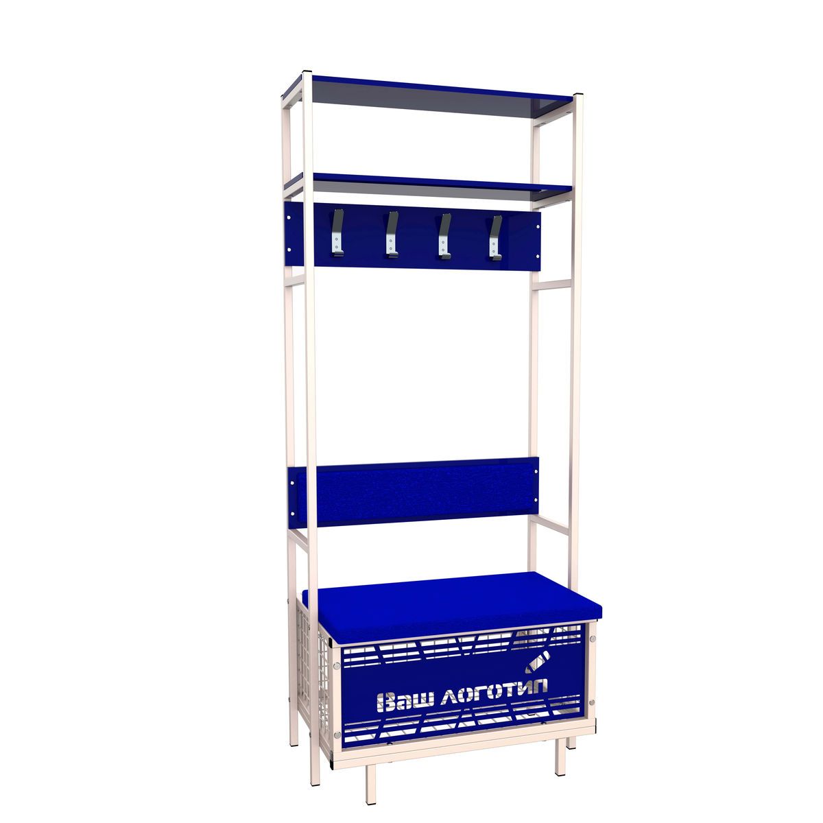 Индивидуальное место хоккеиста односекционное ZSO. Предназначено для системного хранения вещей и экипировки, рассчитанное на одного хоккеиста. Включает в себя крючки для одежды и экипировки, скамью-ящик для хранения обуви и коньков, и две полки. Каркас места выполнен из металлической профильной трубы 25*25 мм, стенка 1,5 мм. Полки выполнены из ЛДСП 16 мм. Сиденье и спинка выполнены из фанеры 15 мм, оклеены вторичным полиуретаном и обтянуты экокожей. Основные размеры: 880*2100*620 мм. Вес: 46 кг.
