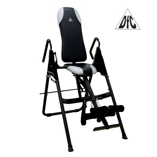Отдельно остановимся на конфигурации самого стола. В начальном положении он имеет форму стула, что очень удобно. Вы просто садитесь на него и из этого положения фиксируете ноги с помощью подпружиненных валиков. Далее вам необходимо немного отклонится назад, чтобы стул распрямился с помощью встроенного амортизатора и принял форму стола. Стол фиксируется в таком положении. И дальше вы начинаете переворот головой вниз.