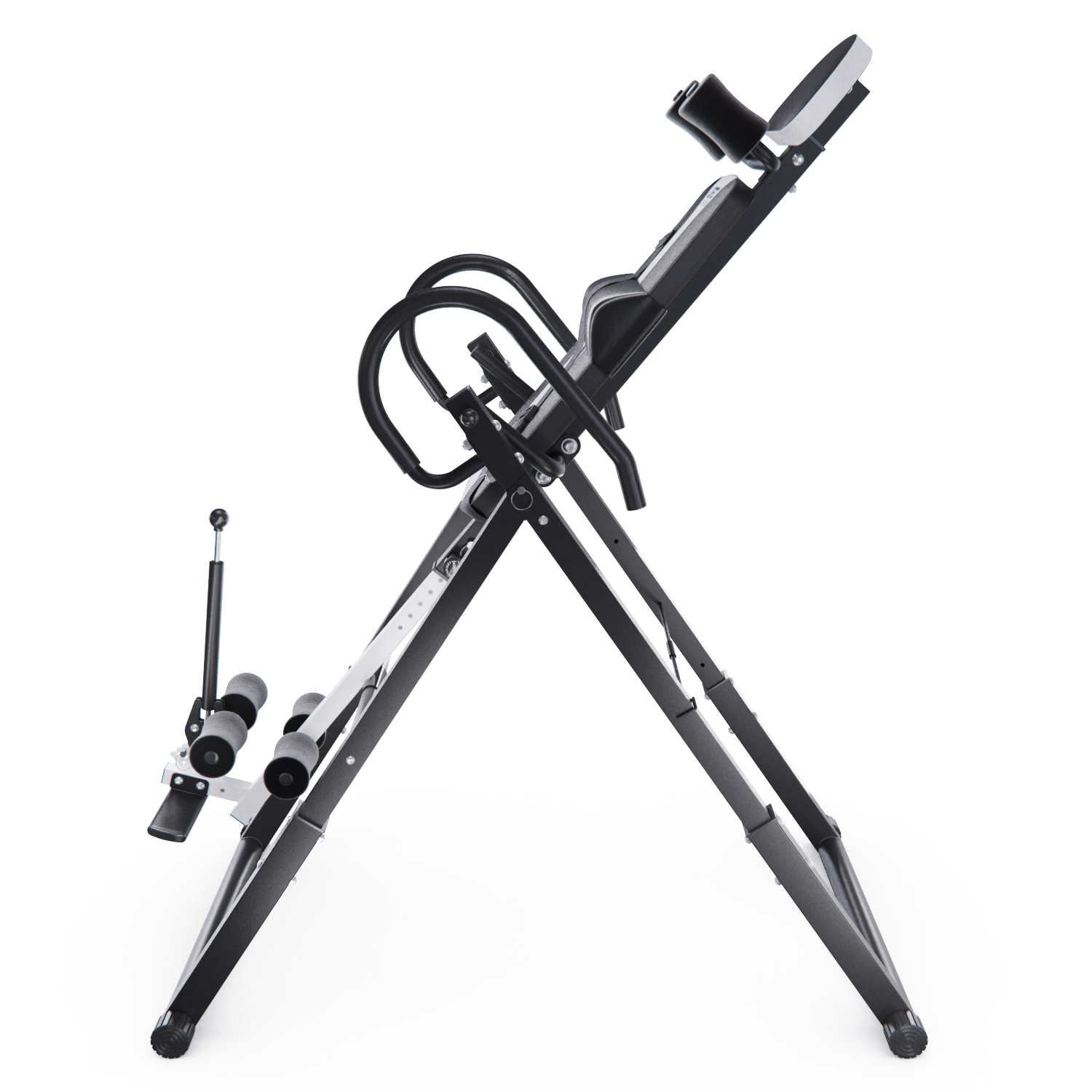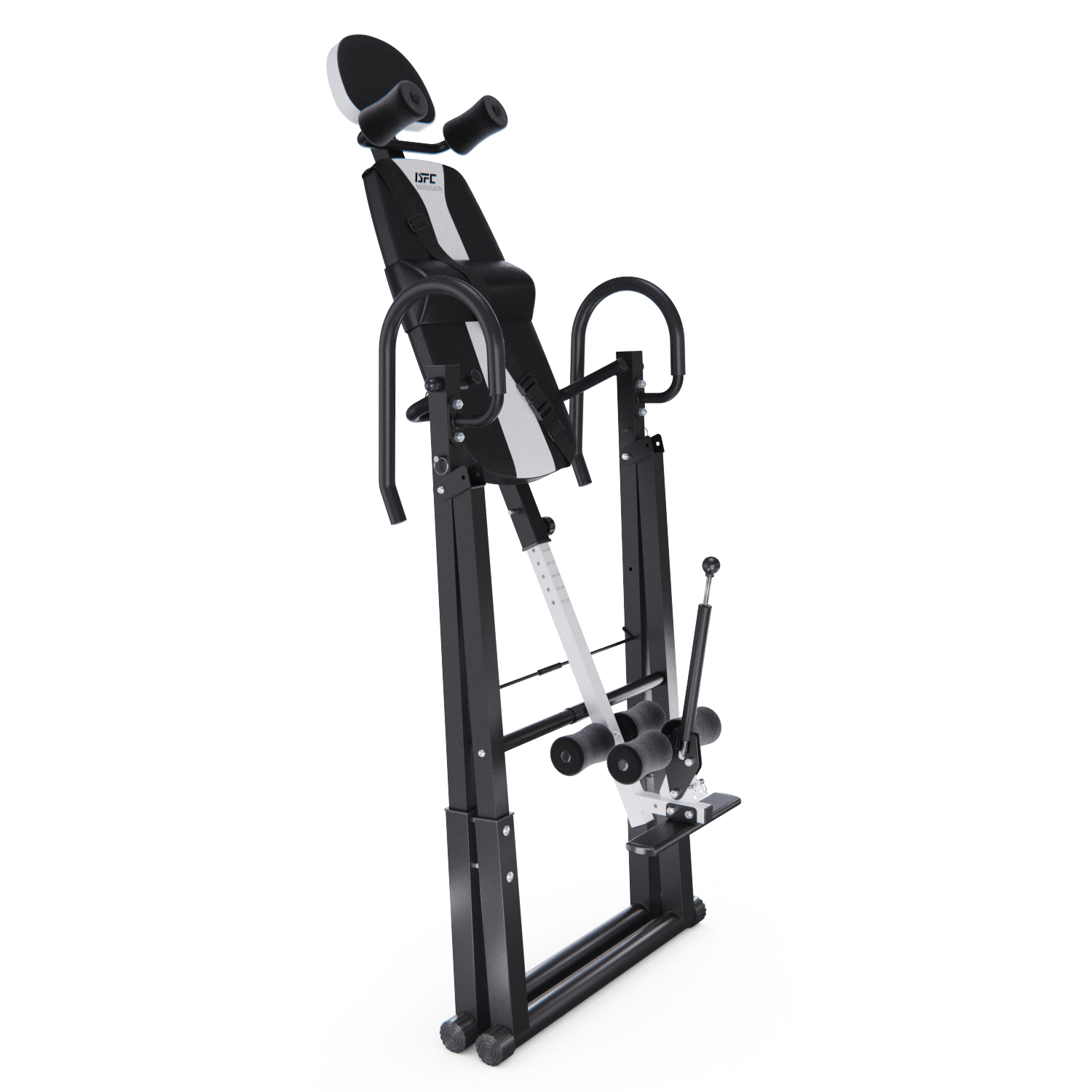 Инверсионный стол DFC IT6312A-B — это удобный и эффективный тренажёр для улучшения осанки, укрепления связок и улучшения кровообращения. Он имеет спинку чёрного цвета с валиками под голову и съёмную подушку под поясницу для дополнительного комфорта. Страховочный ремень входит в комплект, двойные валики для удобства использования.