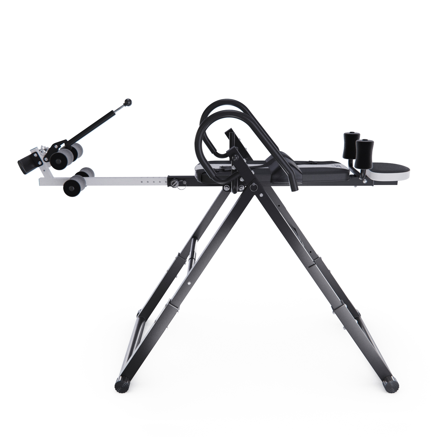 Максимальный вес пользователя составляет 150 кг. Ограничитель угла наклона в виде перекладины позволяет регулировать угол наклона в трёх положениях. Складная конструкция стола облегчает хранение и транспортировку.