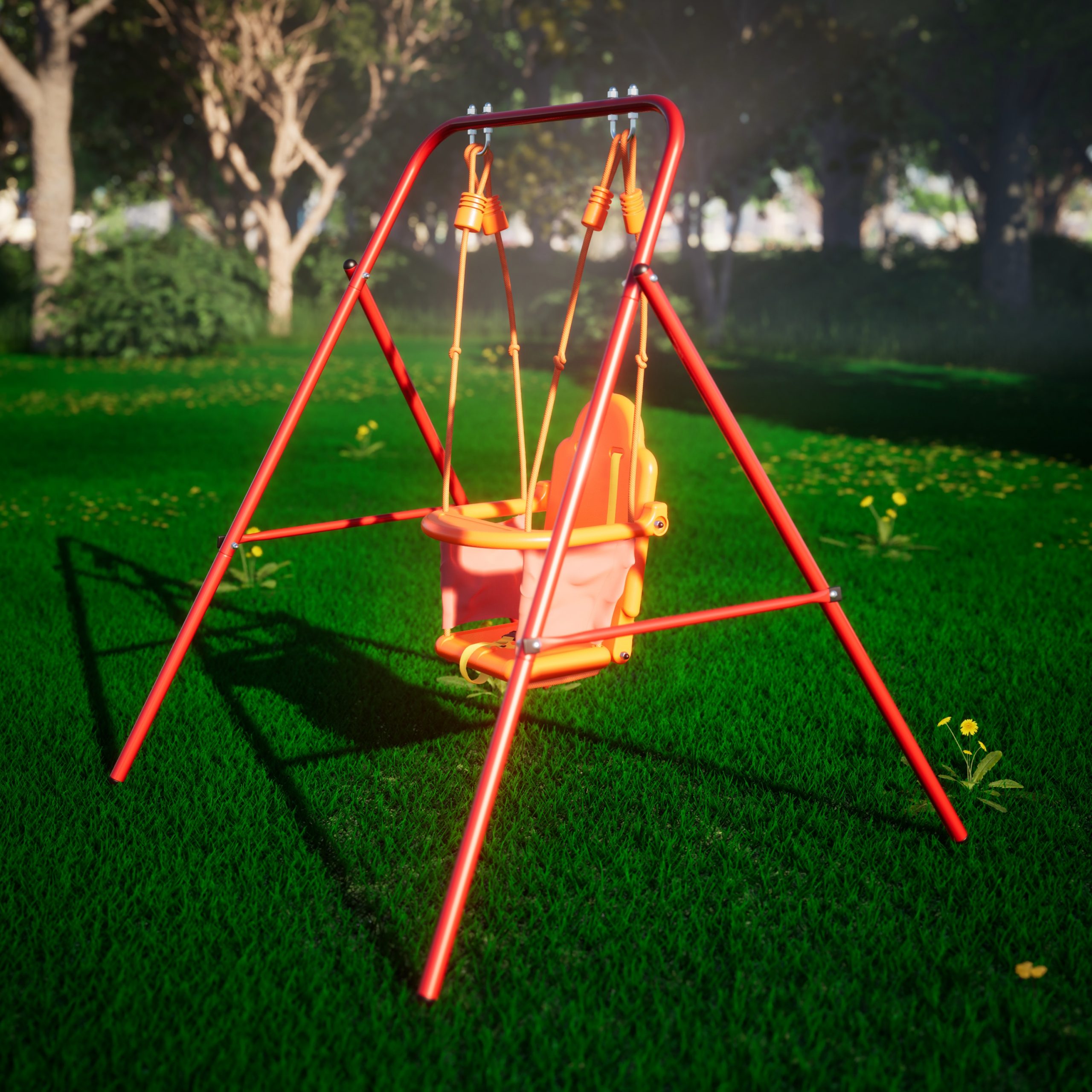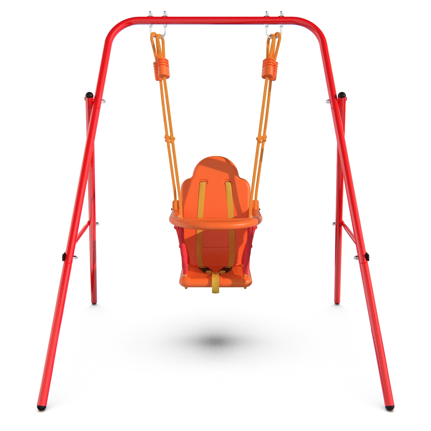 Прочные ремни безопасности с возможностью регулирования и дополнительная передняя планка помогут предотвратить то, чего мы сами так боялись в детстве; стальной профиль 25,4×1,0 мм, из которого выполнена конструкция, придаёт качелям высокую прочность даже при активном использовании и выдерживает нагрузку до 35 кг. Специальная двойная опора не позволяет качелям раскачиваться, поэтому модель подходит даже для маленьких детей от 18 месяцев.