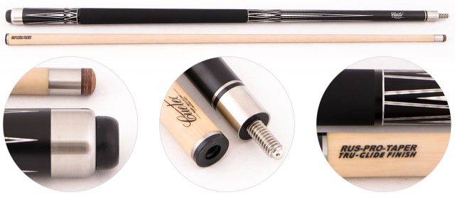 Уникальный графитовый стержень, который находится внутри шафта Thunderbold, предотвращает искривление и придает древку дополнительную жесткость. Thunderbolt сводит к минимуму вибрации и отброс битка при боковых ударах и позволяет лучше контролировать биток и выполнять жесткие удары по дальним шарам. Турник покрыт лаком и инкрустирован ценными породами дерева. Удобная оплетка из кожи обеспечивает игроку плотный и уверенный захват. Прочнейшая титановая скрутка усилена внешним металлическим кольцом на турнике.