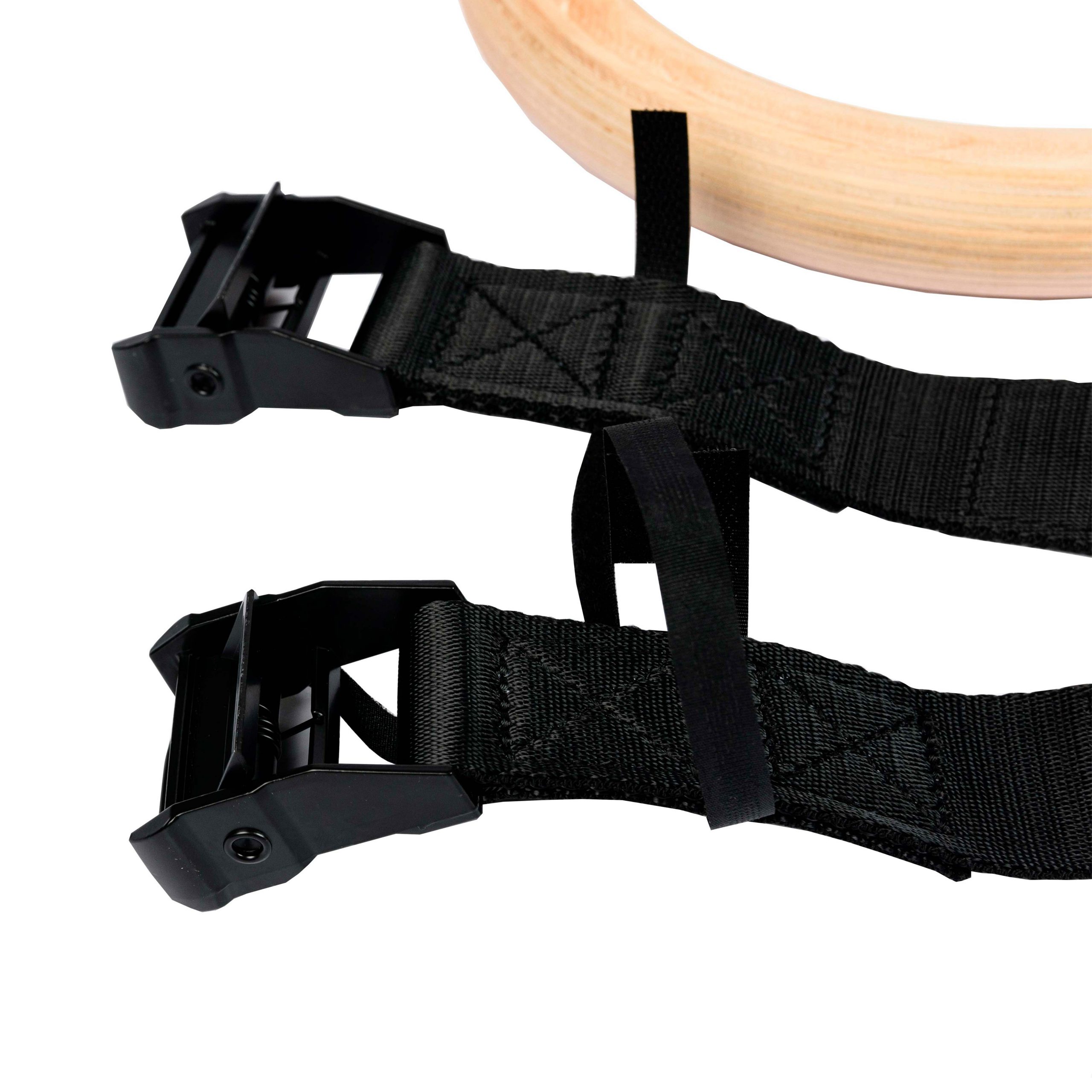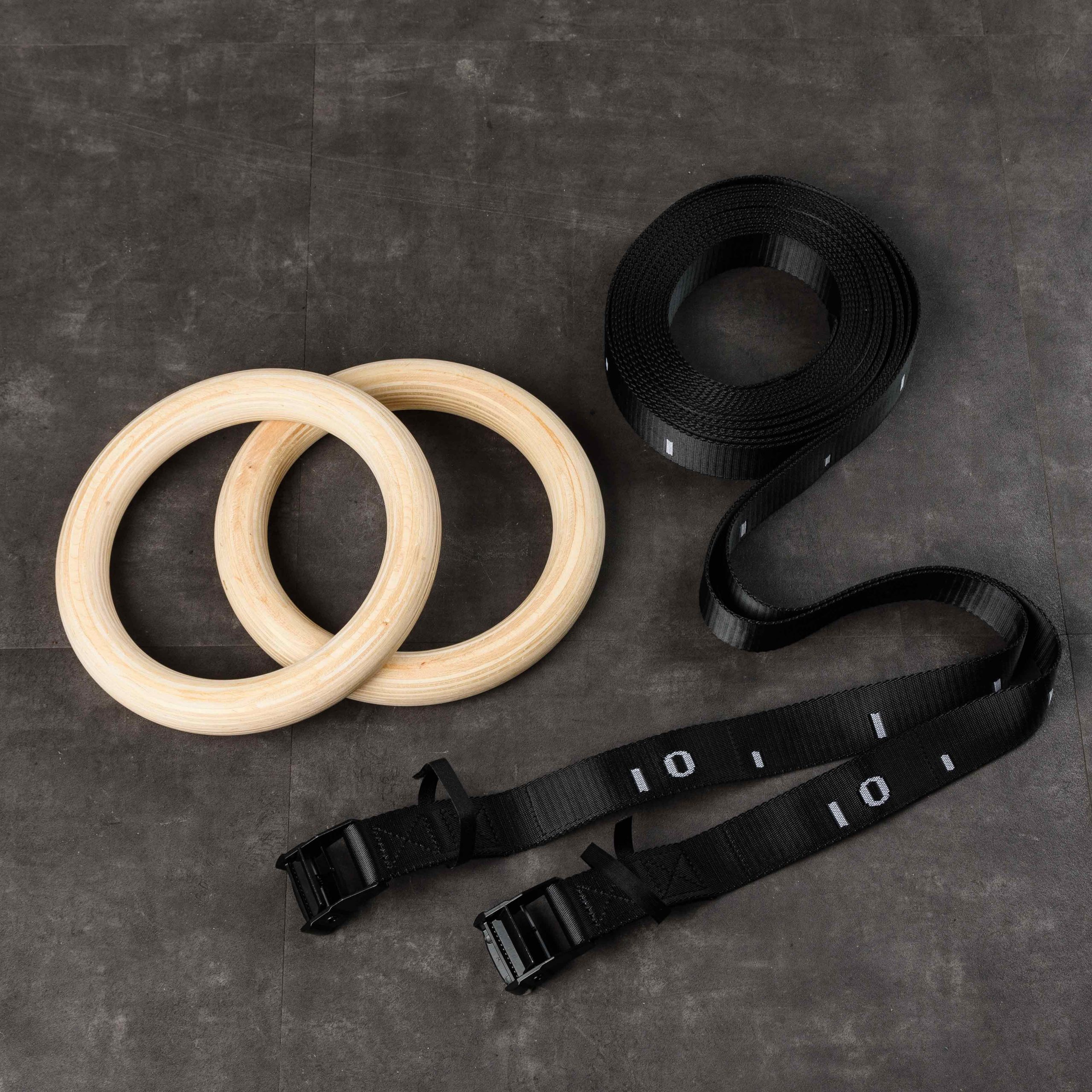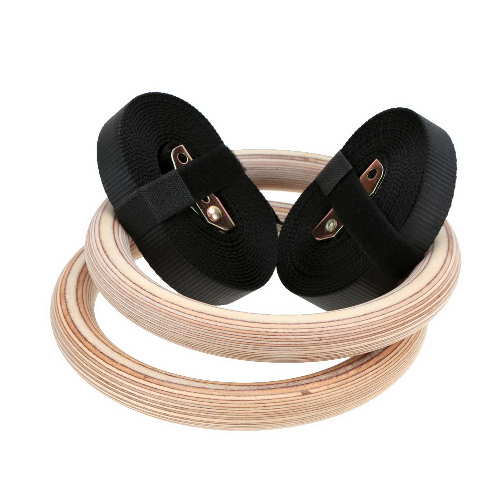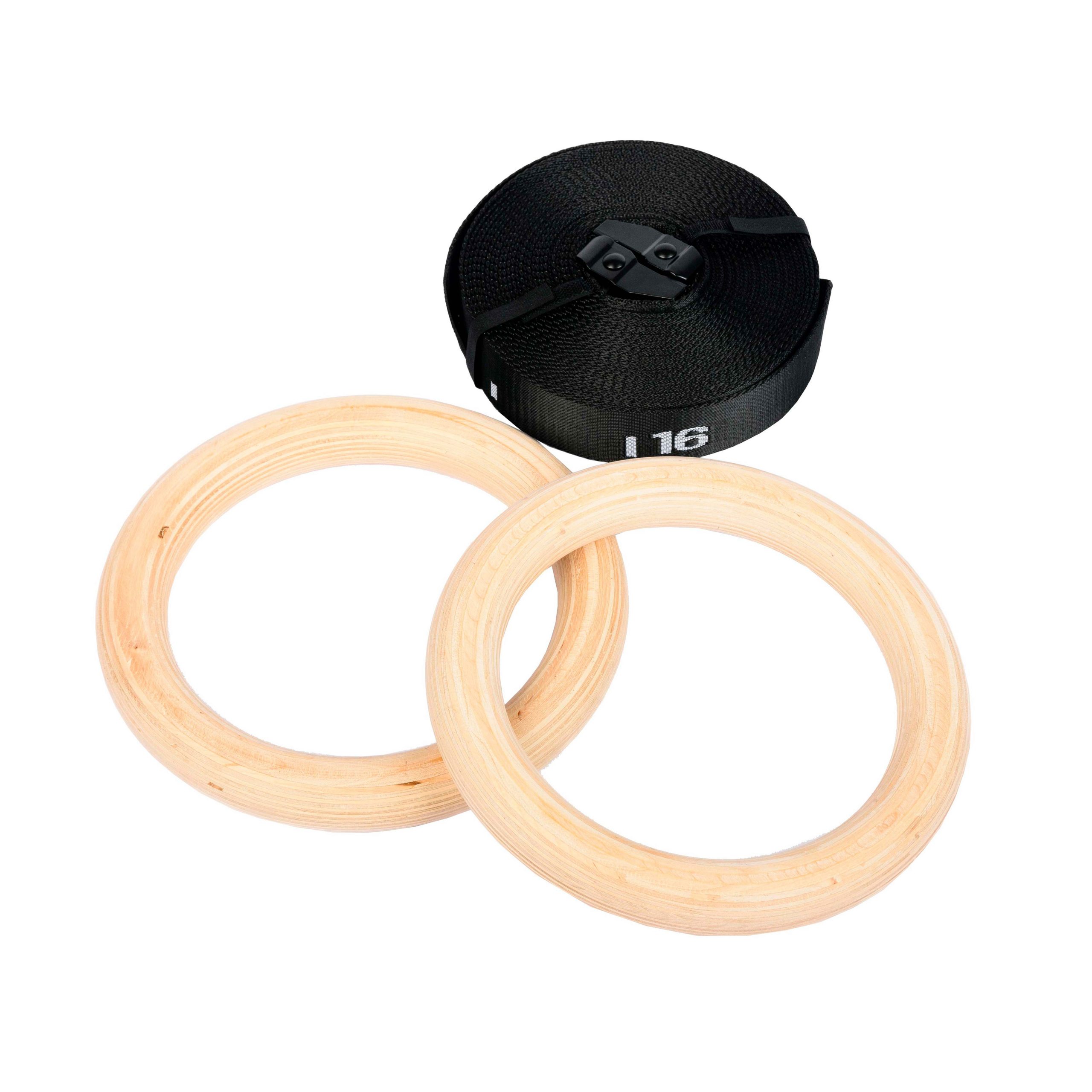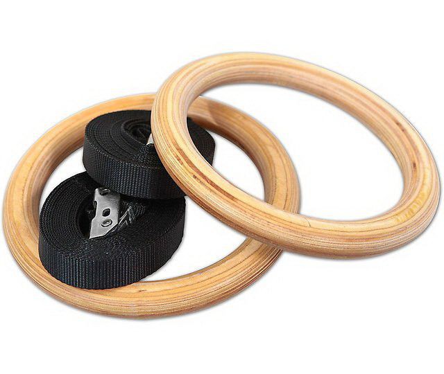 Гимнастические кольца представляют собой пару колец, изготовленных из многослойной фанеры, на которые установлены стропы.