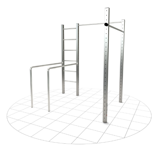 Комплектация: 2 перекладины для подтягивания, гимнастические кольца, брусья, шведская стенка. Полностью оборудованный комплекс для разнообразных тренировок и игр для всей семьи. Устойчивая конструкция, полностью сделанная из нержавеющей стали. Сетка — поставляется отдельно.