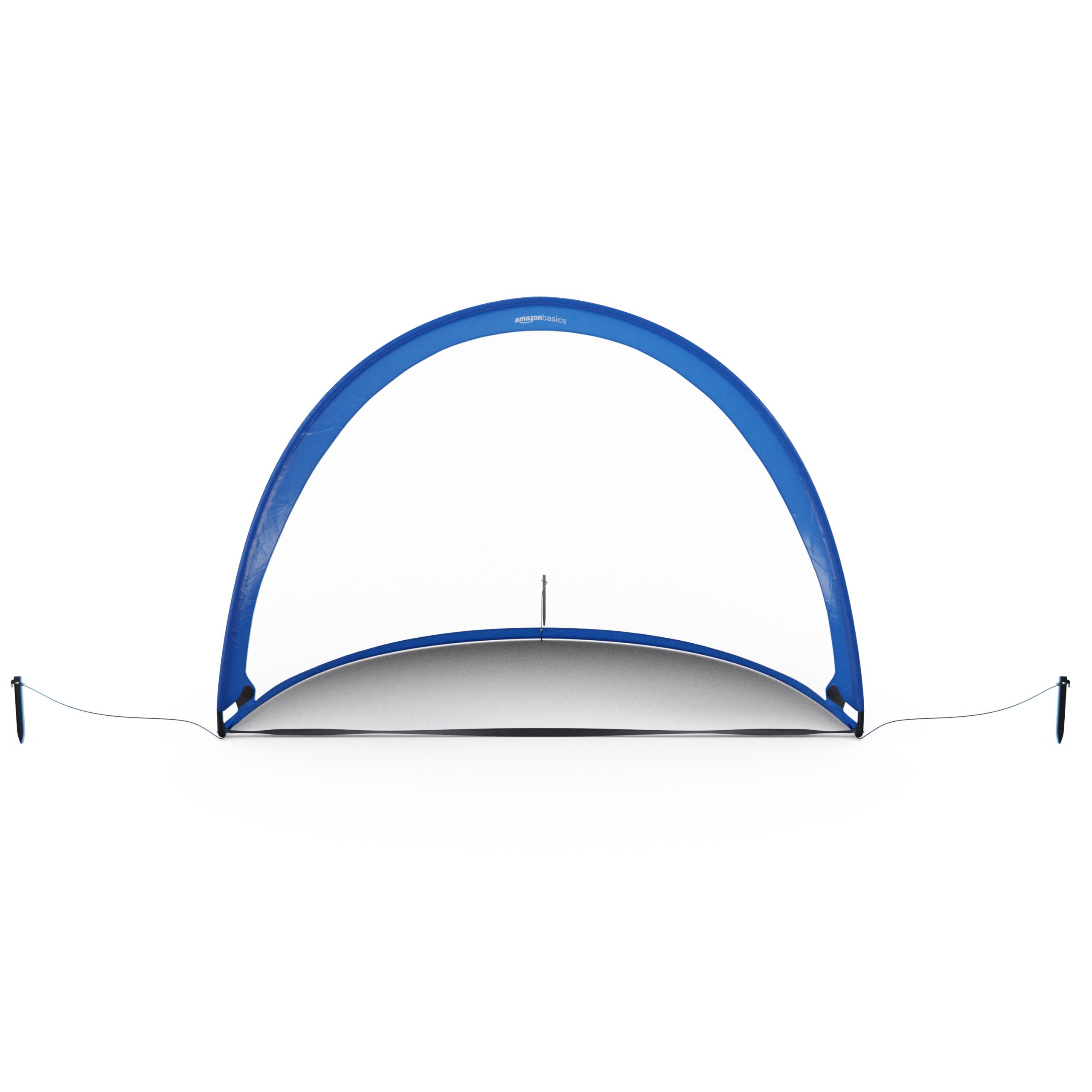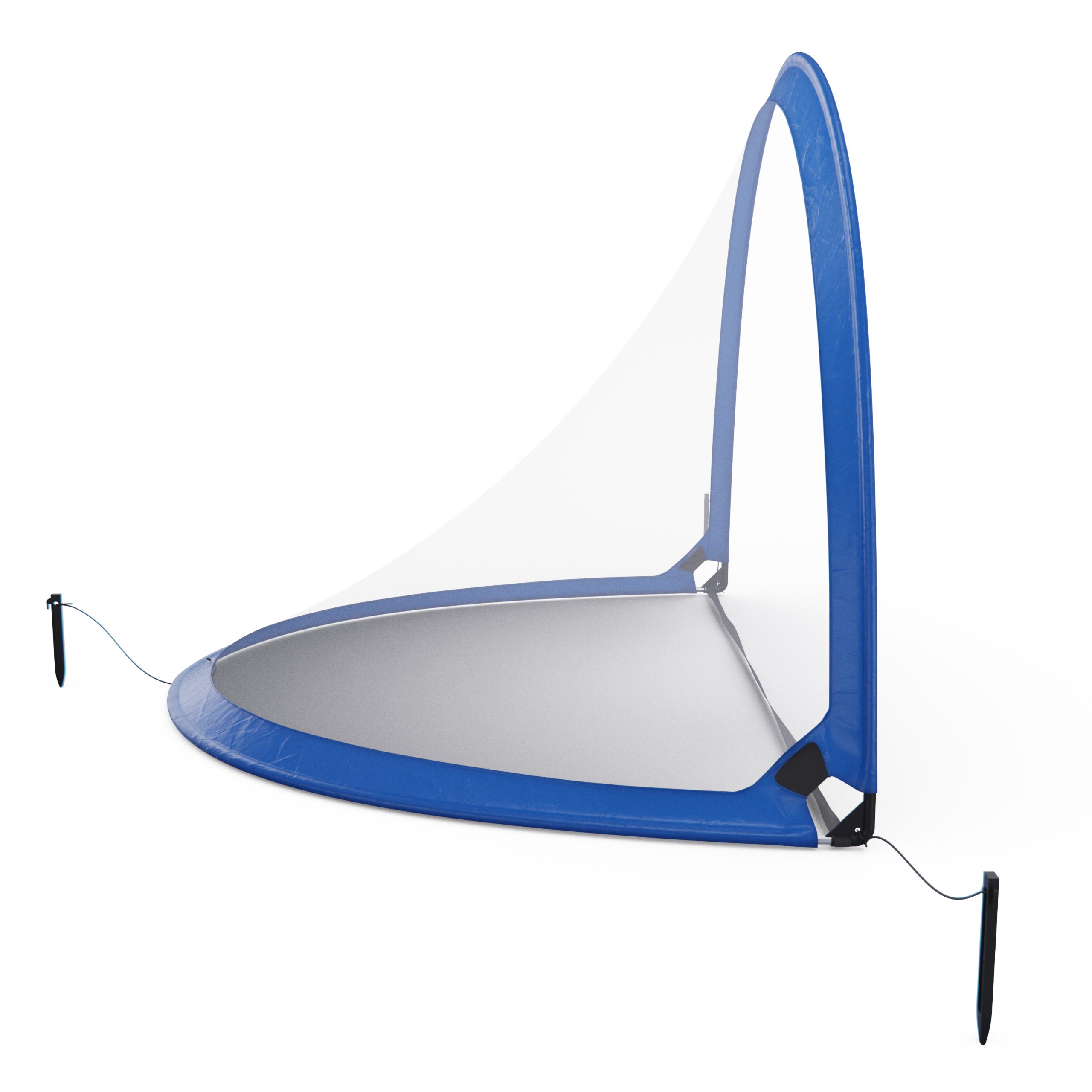 В комплект входят 2 полноразмерных складных ворот (размер в рабочем виде — 183 х 105,5 х 105,5 см), мяч, насос, чехол для хранения и анкеры для крепления в грунт. Это делает ворота полностью автономным решением для быстрого старта игры. Складная конструкция позволяет быстро свернуть ворота до размеров 122 х 85 см и поместить их в удобный чехол. Лёгкий вес и простота сборки делают комплект отличным спутником на даче, пикнике или отдыхе у моря.