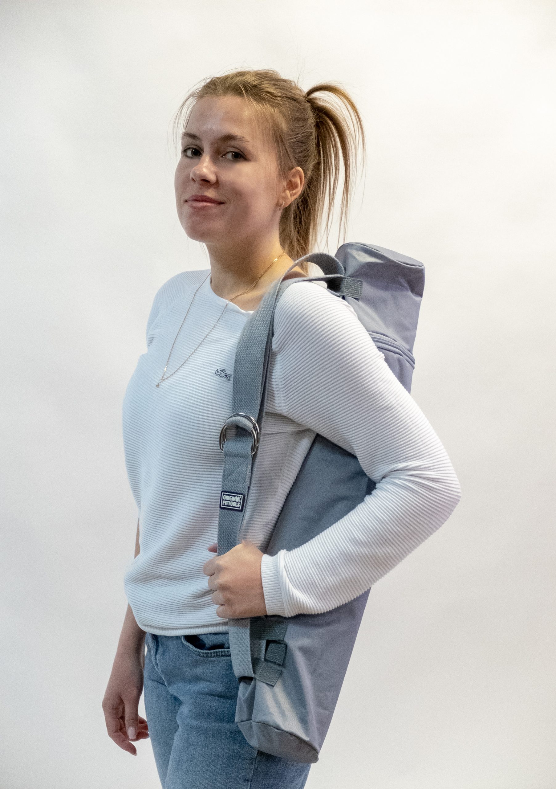 Верный спутник, надежный партнёр. Именно таким мы задумывали этот коврик, поэтому добавили в комплект сумку-чехол (65х10х10 см) с интегрированным в неё в качестве наплечного ремня ремешком для йоги. Сумка выполнена из прочного водонепроницаемого материала и оснащена надежной молнией YKK. Объём сумки позволяет переносить в ней коврик толщиной 2,5 мм вместе с полотенцем для йоги. Если вы не хотите использовать ремешок для йоги в качестве наплечного ремня, его можно убрать в верхний клапан сумки — мы специально оставили для него место. Длина ремешка для йоги — 243 см, материал ремешка — хлопок, материал фиксирующих элементов (D-колец) — хромированная сталь.