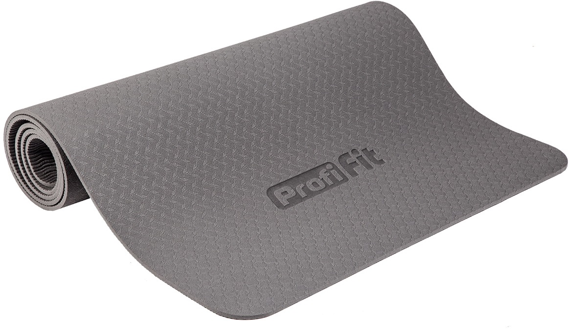 Коврик для йоги и фитнеса PROFI-FIT, СТАНДАРТ (серый).