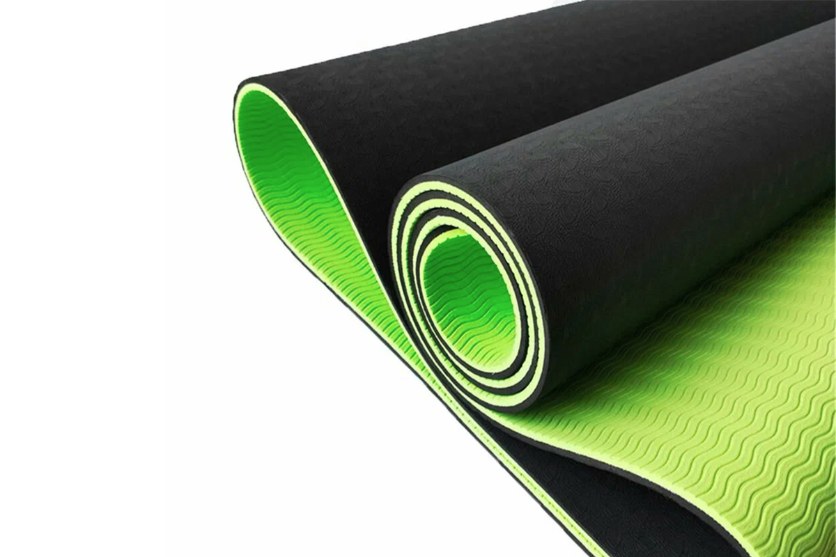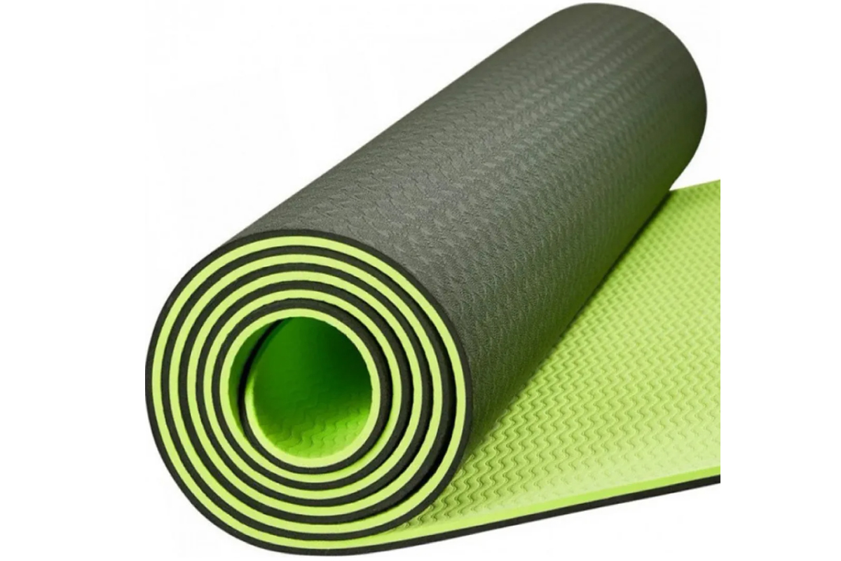 Коврик для йоги 10 мм двухслойный TPE черно-зеленый