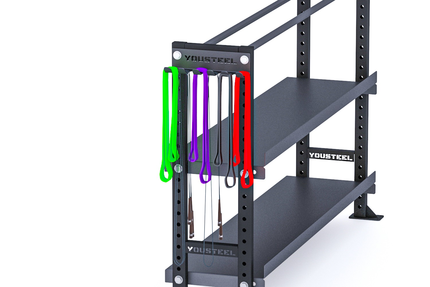 Петли и скакалки — одни из самых часто используемых аксессуаров в зале, но при неправильном хранении они легко выйдут из строя. Очень важно подобрать такое место в зале, где клиенты легко смогут ими воспользоваться, а сами скакалки и петли не будут деформироваться и приходить в негодность. Кронштейн легко размещается на стеллаже или крепится в стену.