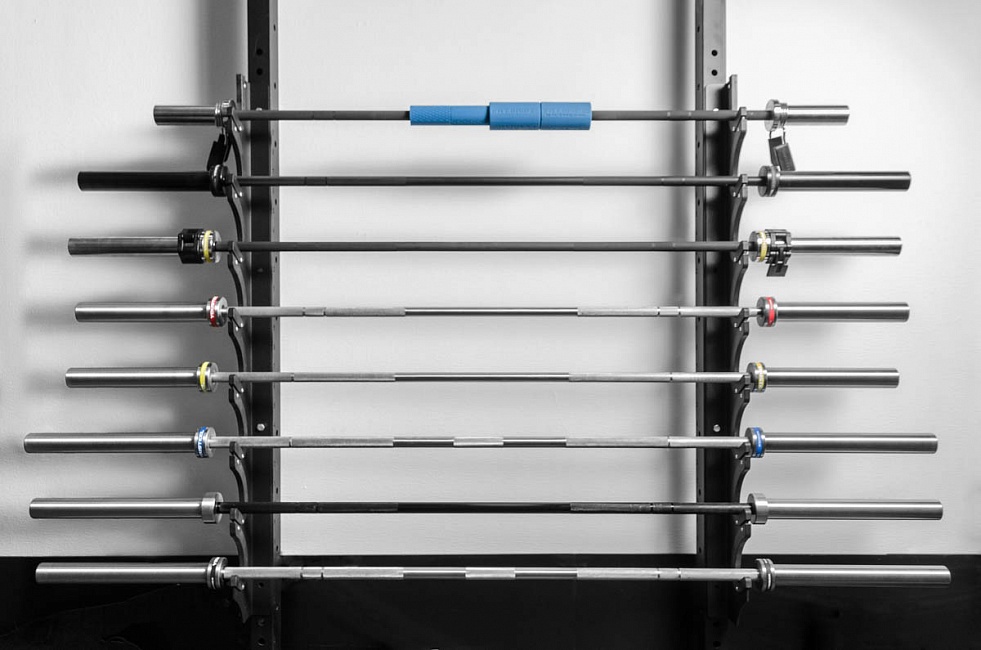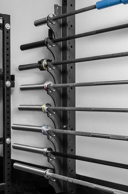 Хранение инвентаря очень важно организовать эффективно и удобно. Настенный кронштейн — наиболее удобное решение для хранения грифов. Прикрепив его на стену вы сразу можете хранить в одном месте 8 грифов.