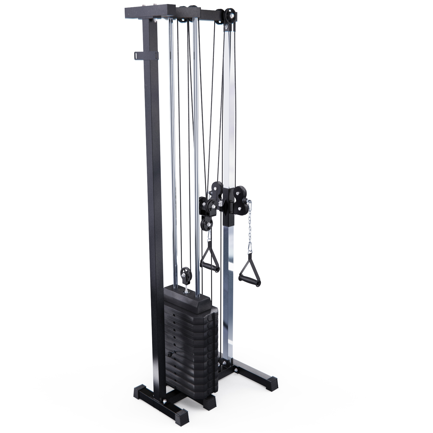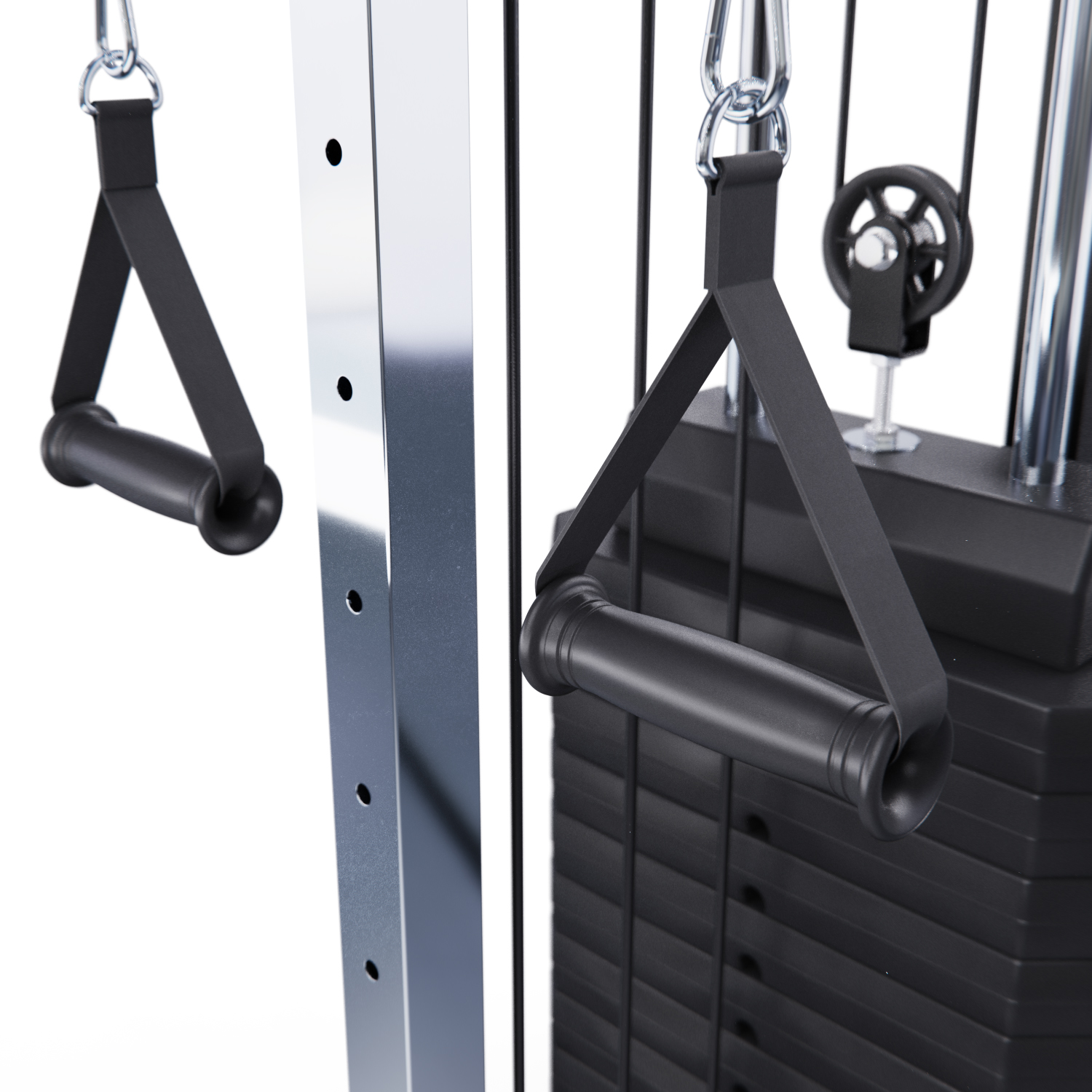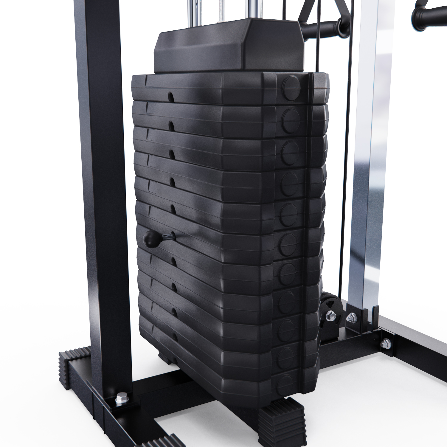 Многофункциональный силовой тренажер (кроссовер) со встроенным весовым стеком общей массой 66 кг.