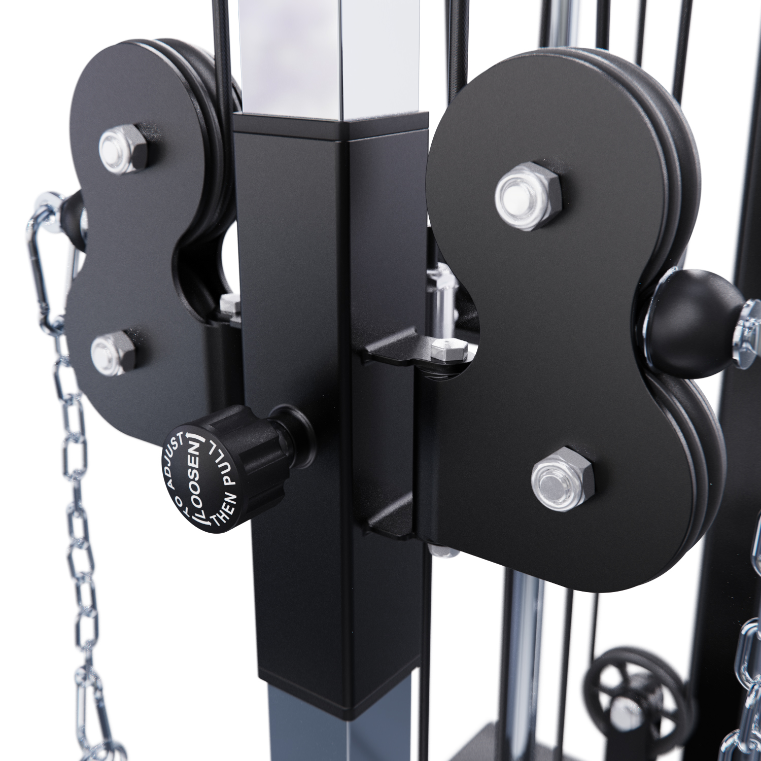 Два независимых блока на общей базе возможно закрепить в удобном месте по всей высоте тренажера, всего 21 положение.
