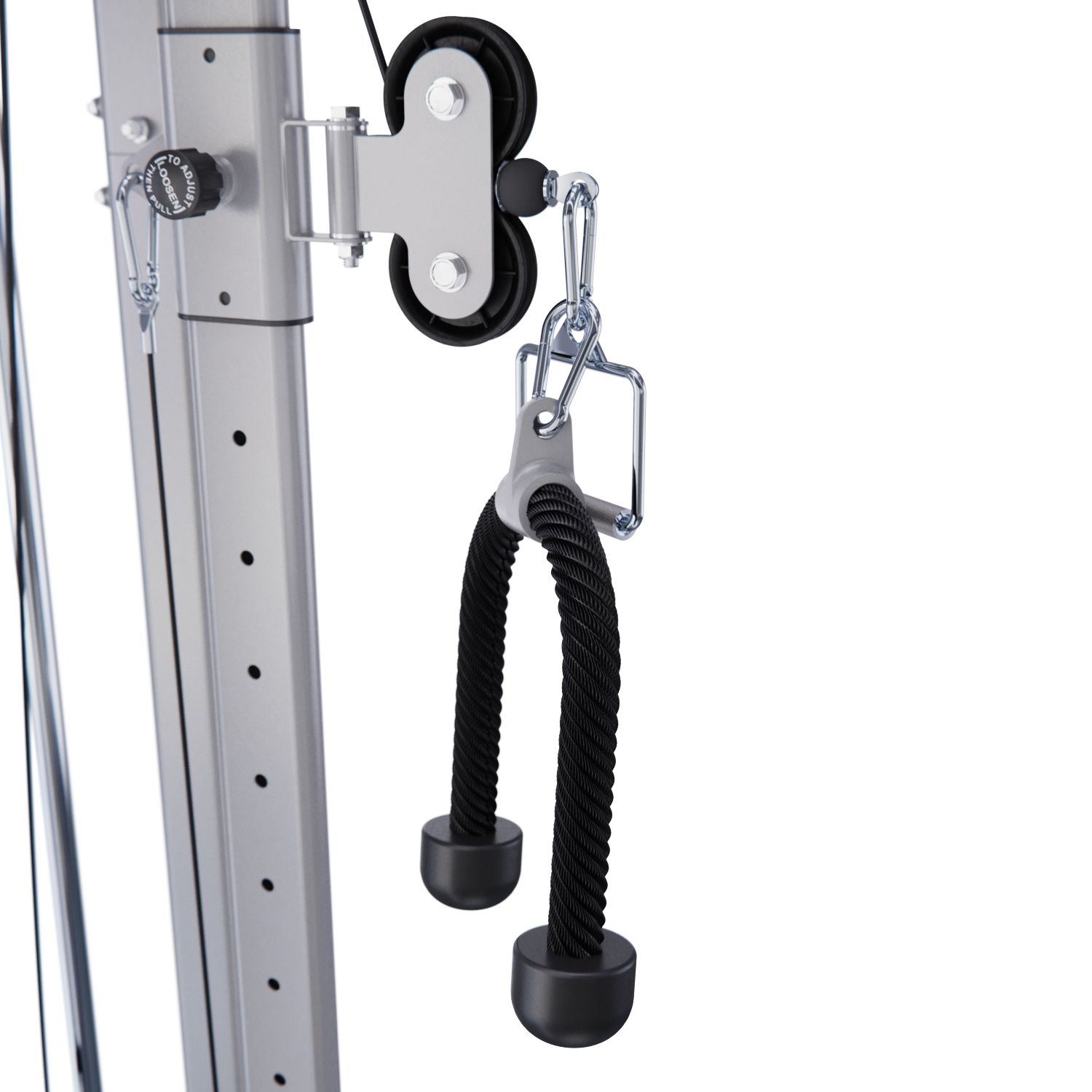 Турник с нескользящими ручками выдерживает вес до 150 кг и подходит для укрепления спины, рук и плечевого пояса. В комплект также входит канат (гибкая тяга) для упражнений на трицепс, бицепс, плечи и кор.