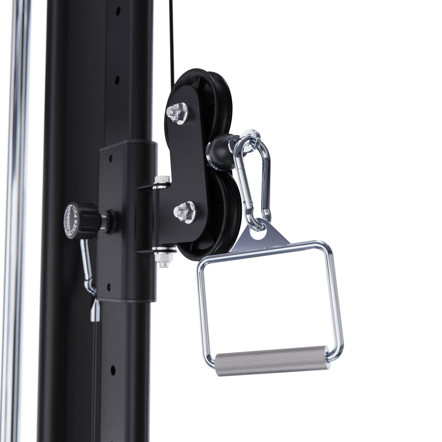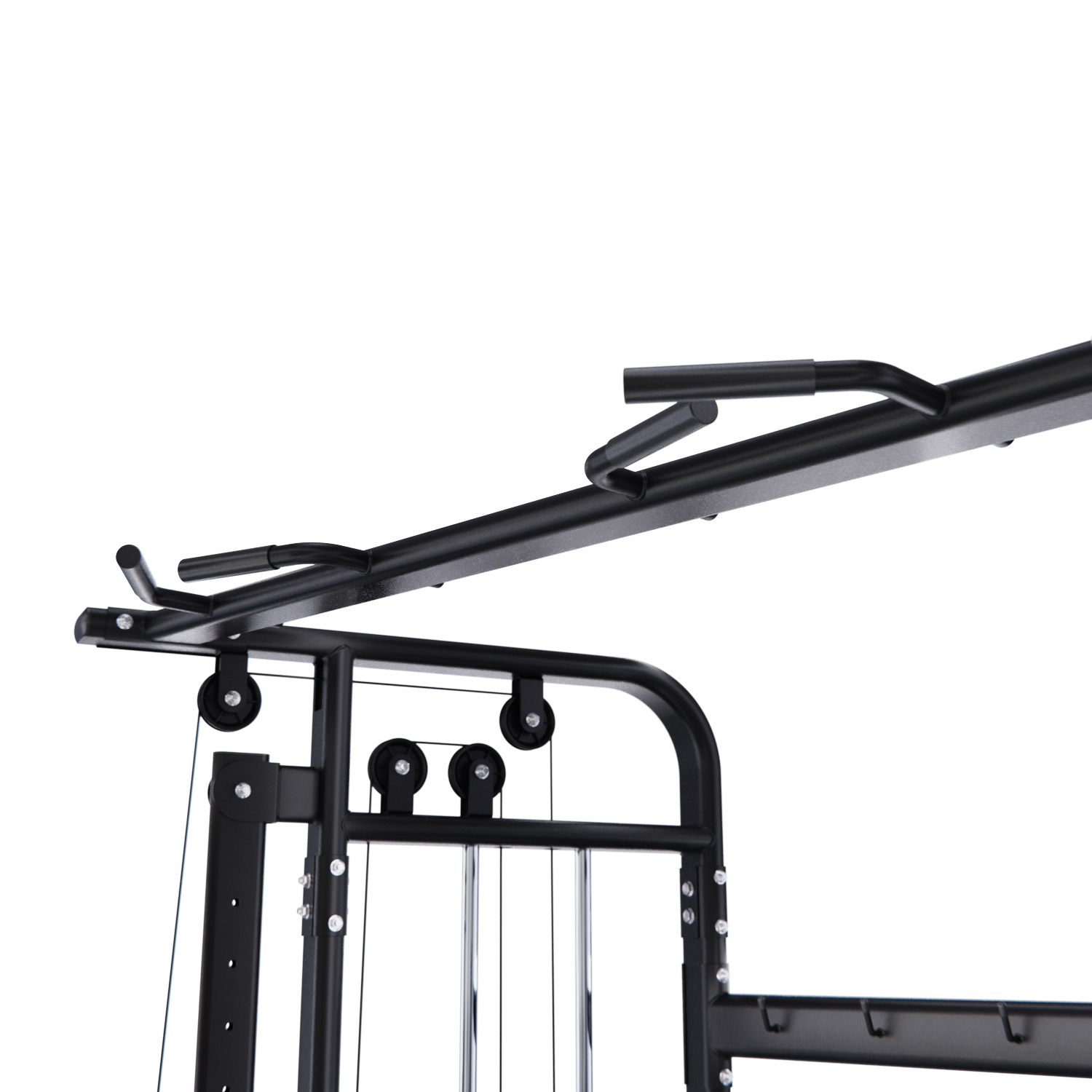 Кроссовер DFC D71506 — это силовая рама со встроенным весом для домашнего использования, которая позволяет прокачивать все мышцы тела благодаря возможности регулировки. На тренажёре можно выполнять различные упражнения, такие как тяга руками (в разных положениях), приседания с весом, махи, упражнения на укрепление мышц кора и подтягивания. Максимально допустимая нагрузка на тренажер – 150 кг. и максимально допустимая нагрузка на турник – 150 кг.