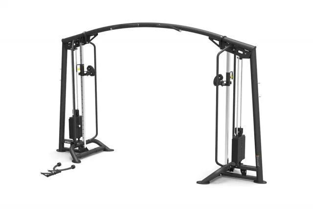 Данный кроссовер относится к моделям профессионального класса и предназначен для коммерческого использования. Функциональные упражнения, выполняемые с помощью этого тренажера, обеспечивают эффективную проработку различных мышечных групп. Двойные тяговые колонны позволяют выполнять упражнения как двумя руками, так и одной, что обеспечивает возможность прорабатывать необходимые группы мышц. Вращающиеся рукояти обеспечивают свободные и естественные движения. На верхней перекладине предусмотрен турник, рукоятки которого позволяют выполнять подтягивания Широким, нейтральным и узким хватом, что позволяет прорабатывать различные группы мышц, акцентируя на них нагрузку. Конструкция кроссовера Spirit SP-3527 включает 2 грузовых стека. Удобный выбор нагрузки осуществляется с помощью штифтов.