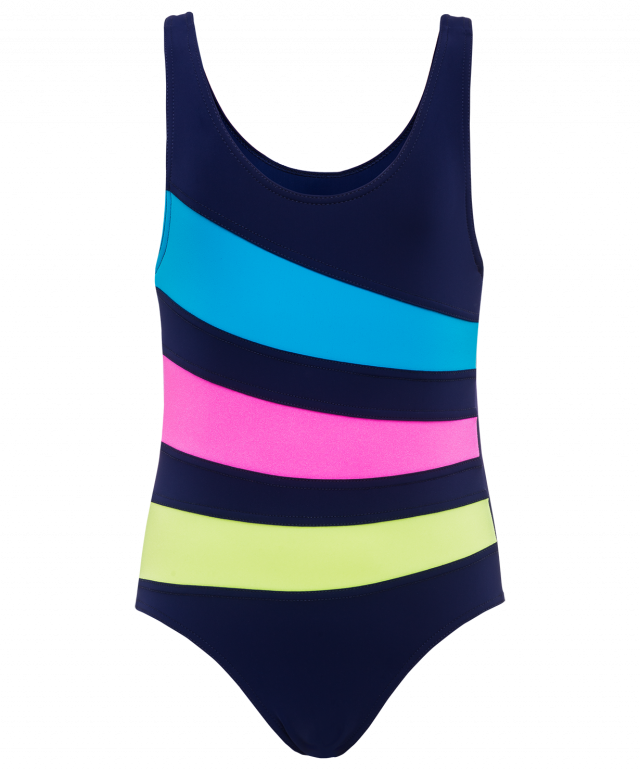 Спортивный совместный детский купальник для плавания выполнен из бифлекса. Спереди декорирован вставками контрастного цвета. Спинка-борцовка для максимальной поддержки плечевой области.
