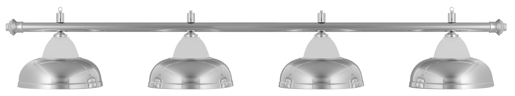 Изящная лампа классического дизайна органично впишется в любой интерьер. Устойчивые к механическим повреждениям металлические плафоны на металлической штанге обеспечивают не только качественное освещение игрового поля, но и создают уютную атмосферу в бильярдном клубе или кабинете. Вставки из стекла рассеивают свет по всему пространству над бильярдным столом, окружая его мистическим ореолом. Комплектуется цепочками и чашками для крепления к потолку. Предназначена для равномерного освещения игрового поля 8 — 9 футовых столов.