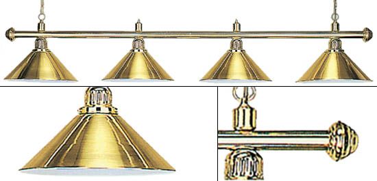 Изящная лампа классического дизайна органично впишется в любой интерьер. Устойчивые к механическим повреждениям металлические плафоны на металлической штанге обеспечивают не только качественное освещение игрового поля, но и создадут уютную атмосферу в бильярдном клубе или кабинете. Комплектуется цепочками и чашками для крепления к потолку. Предназначена для равномерного освещения игрового поля 8 — 9 футовых столов.