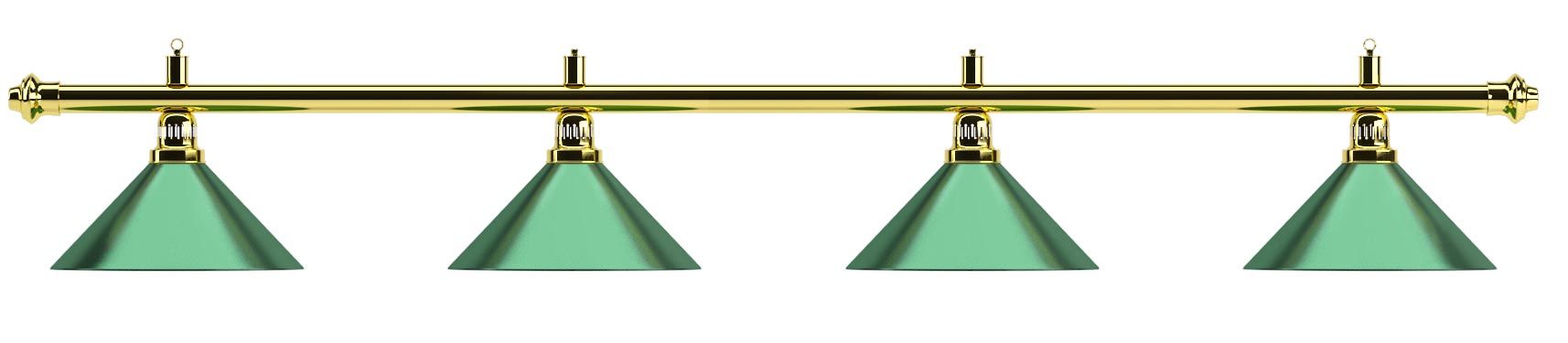 Изящная лампа классического дизайна органично впишется в любой интерьер. Устойчивые к механическим повреждениям металлические плафоны на металлической штанге обеспечивают не только качественное освещение игрового поля, но и создадут уютную атмосферу в бильярдном клубе или кабинете. Комплектуется цепочками и чашками для крепления к потолку. Предназначена для равномерного освещения игрового поля 8 — 9 футовых столов.
