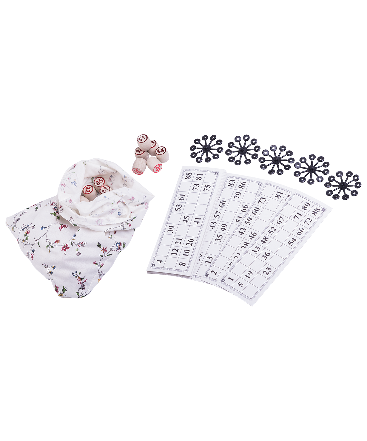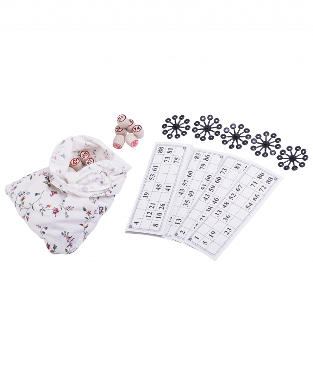Материал: Карточки — картон, бочонки — древопласт